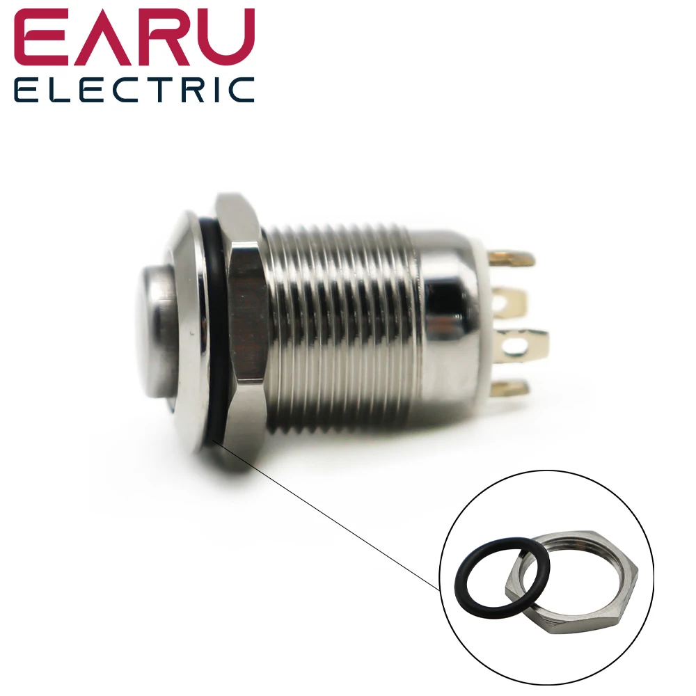 1pcs 12mm Waterproof Momentary High Round Stainless Steel Metal Push Button Switch Car Start Horn Speaker Bell Automatic Reset