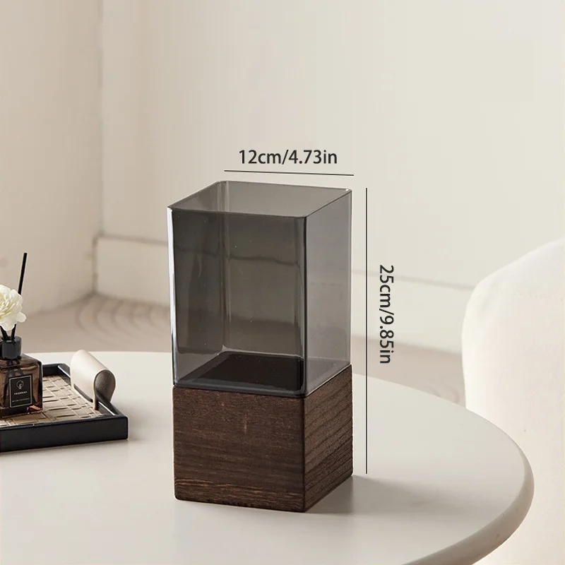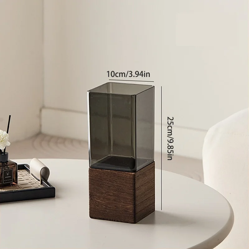 The vase looks great. The seller’s description states that it’s made of acrylic, but the base looks very much like natural material. No, it’s not made of solid wood, but it feels similar.