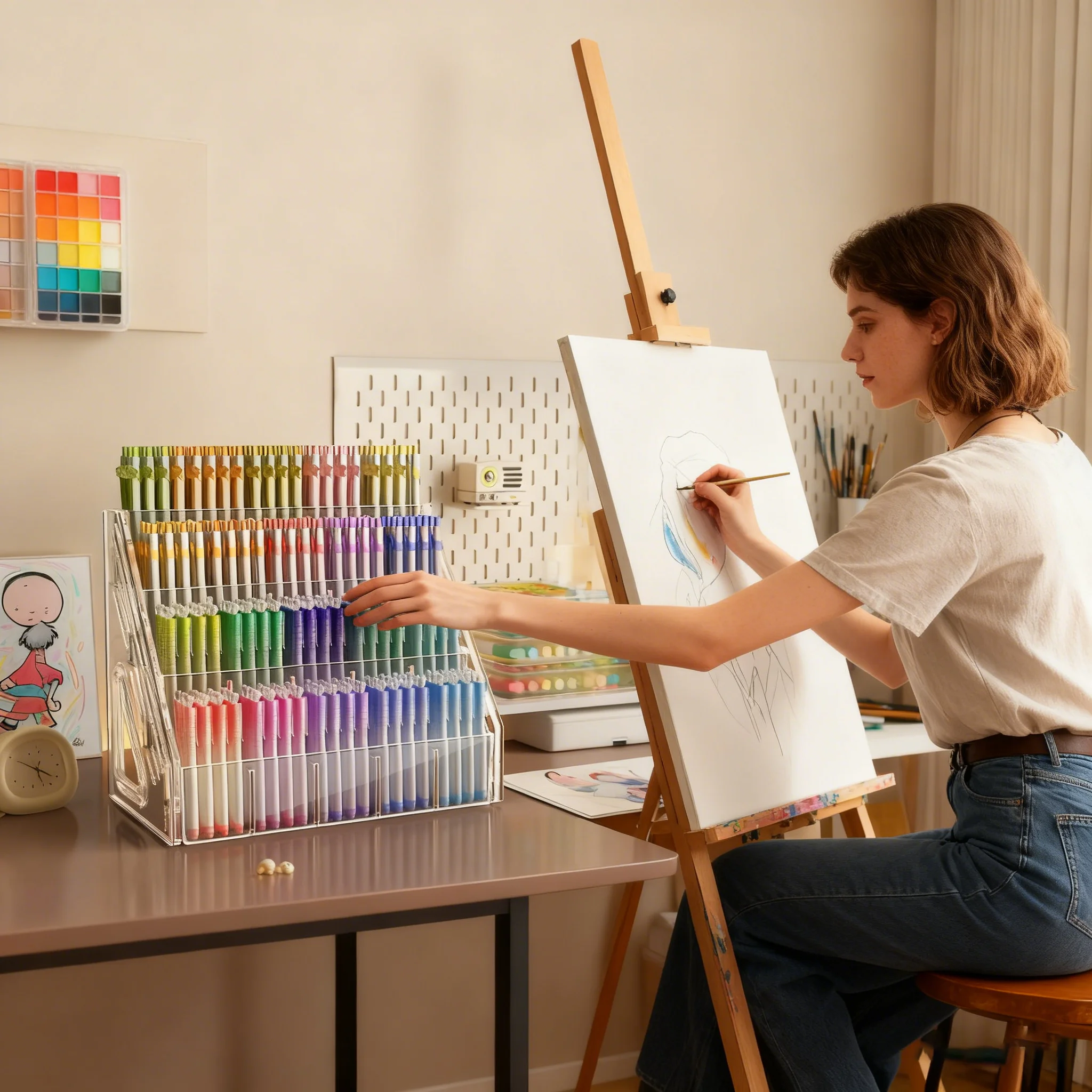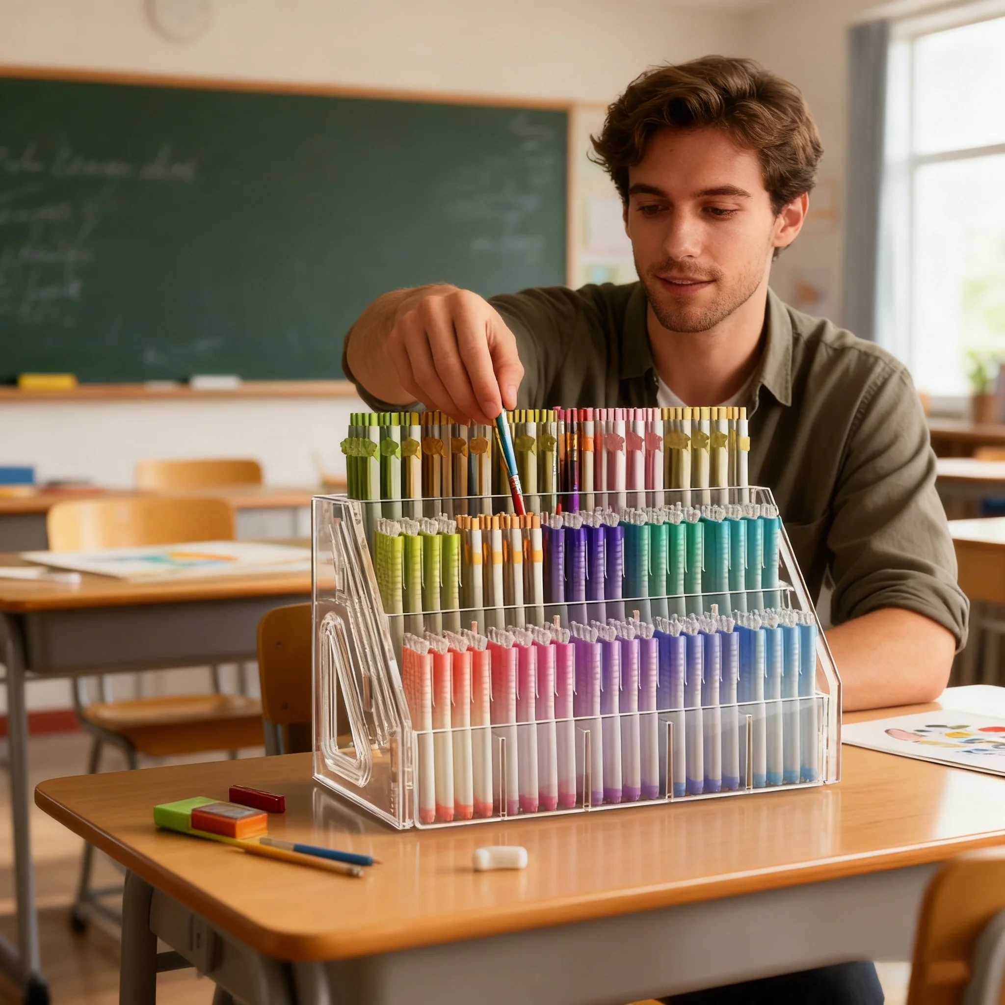 6 reviews for 1Pc Pen Holder Organizer, Large Capacity Acrylic Storage Rack, Paintbrush Compartment Organizer, Suitable for Paintbrushes, Pencils, Markers, Suitable for Home, Office, School, Durable Design, Essential for Office Supplies and Craft Enthusiasts