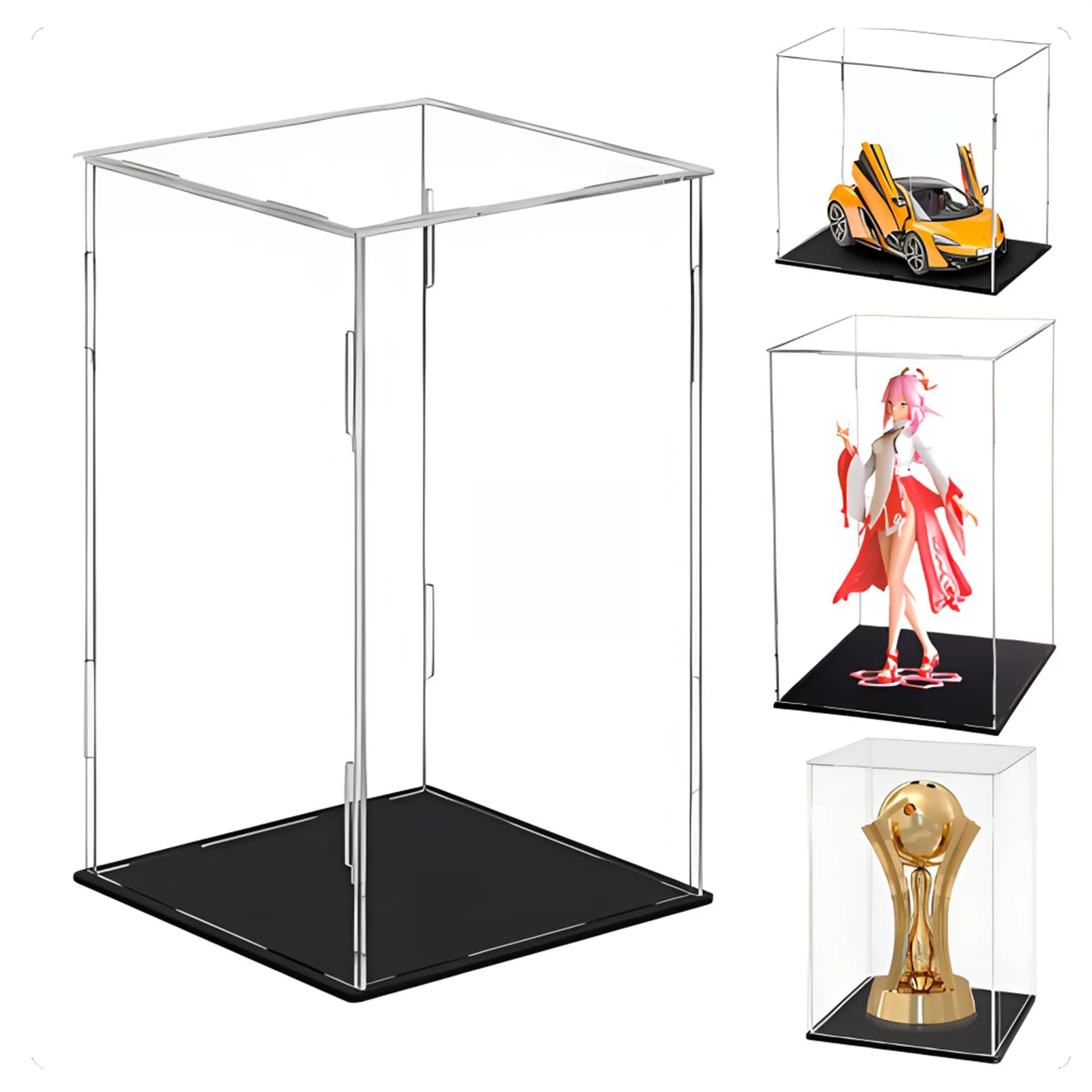 1pcs, black base acrylic display box, suitable for toy dolls, collectibles, and simple assembly dust-proof storage boxes