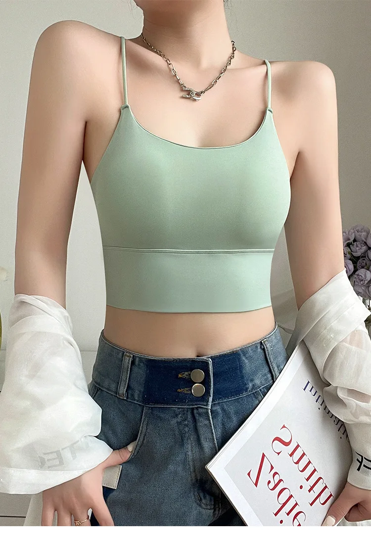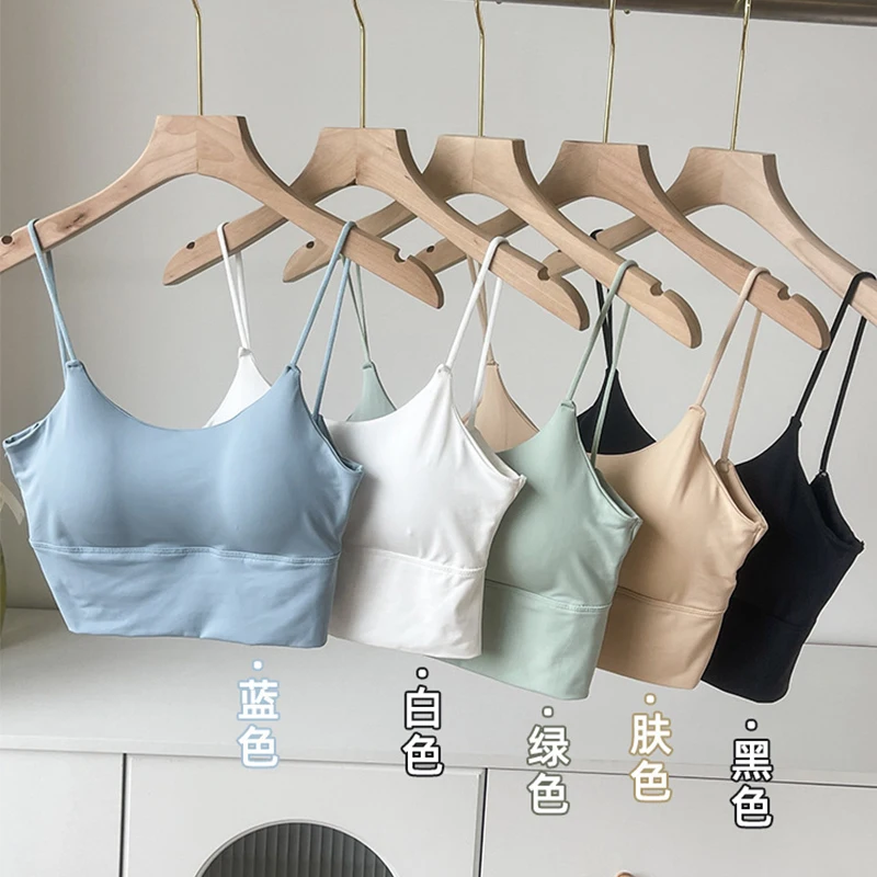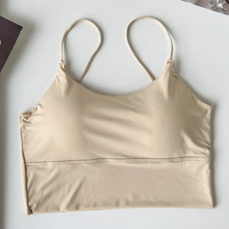 Girls Straps Vests Women Ice Silk Bras Ladys Inside Wear Camisoles Slim With Padded Underwears Summer Female Sexy Tank Tops