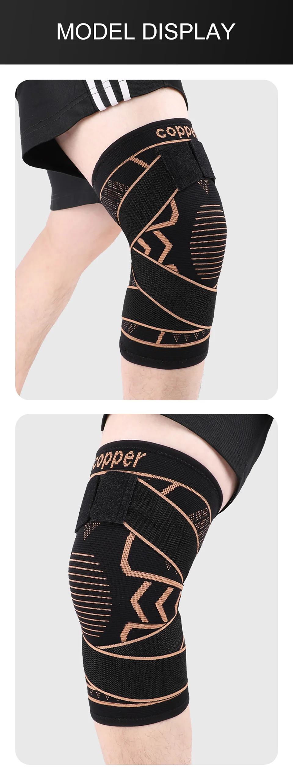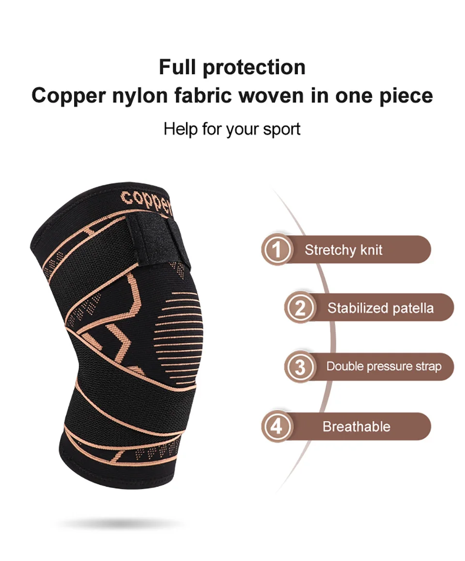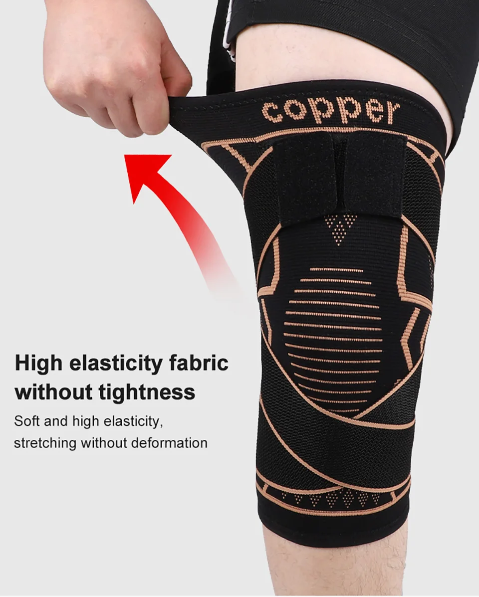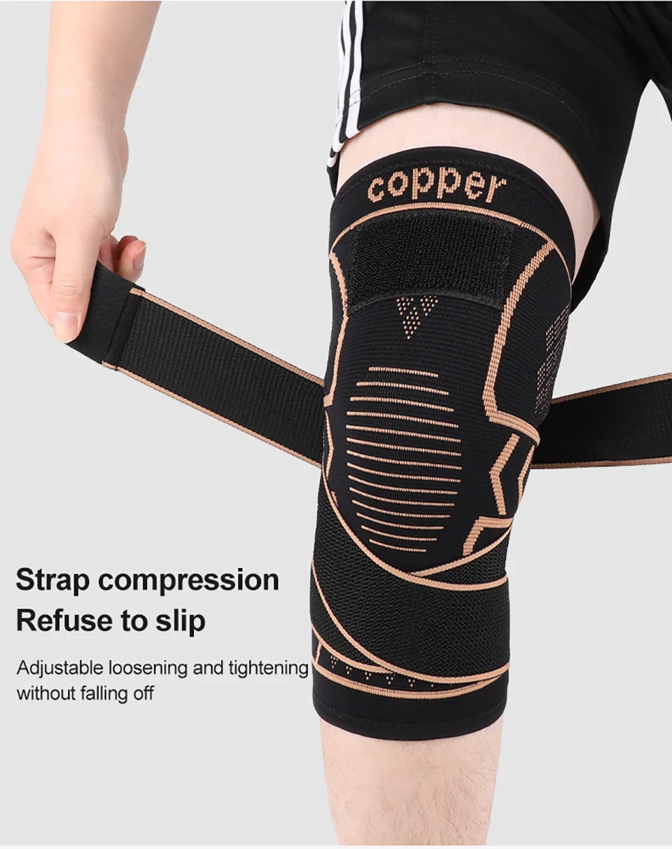 1Pcs Knee Support Knitted Nylon Copper Ion X-type Stable Patella Compression With Straps Ligament Strain Knee Pads Men Women