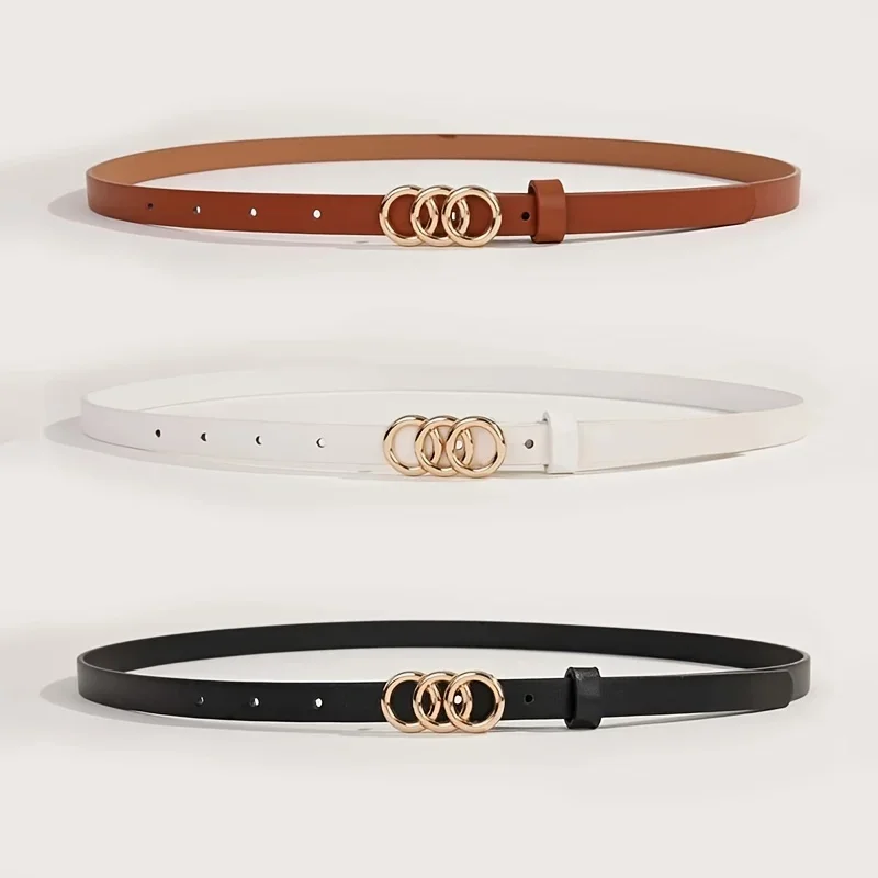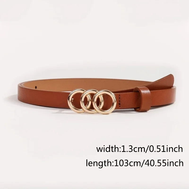 The belt with the gold triple ring buckle is very cute, I really like it and it looks great on me. Just like the description and photos.😍☺️🤩