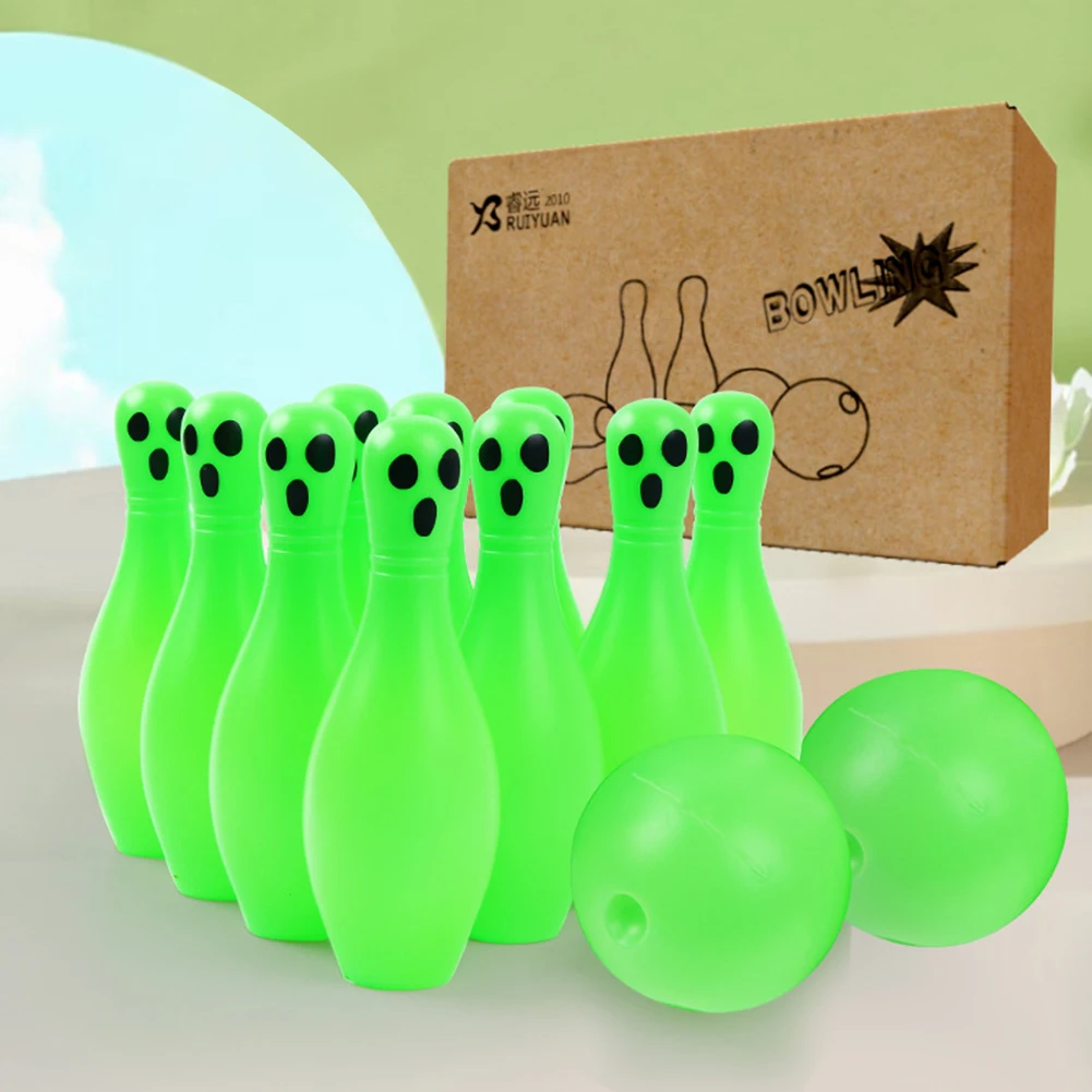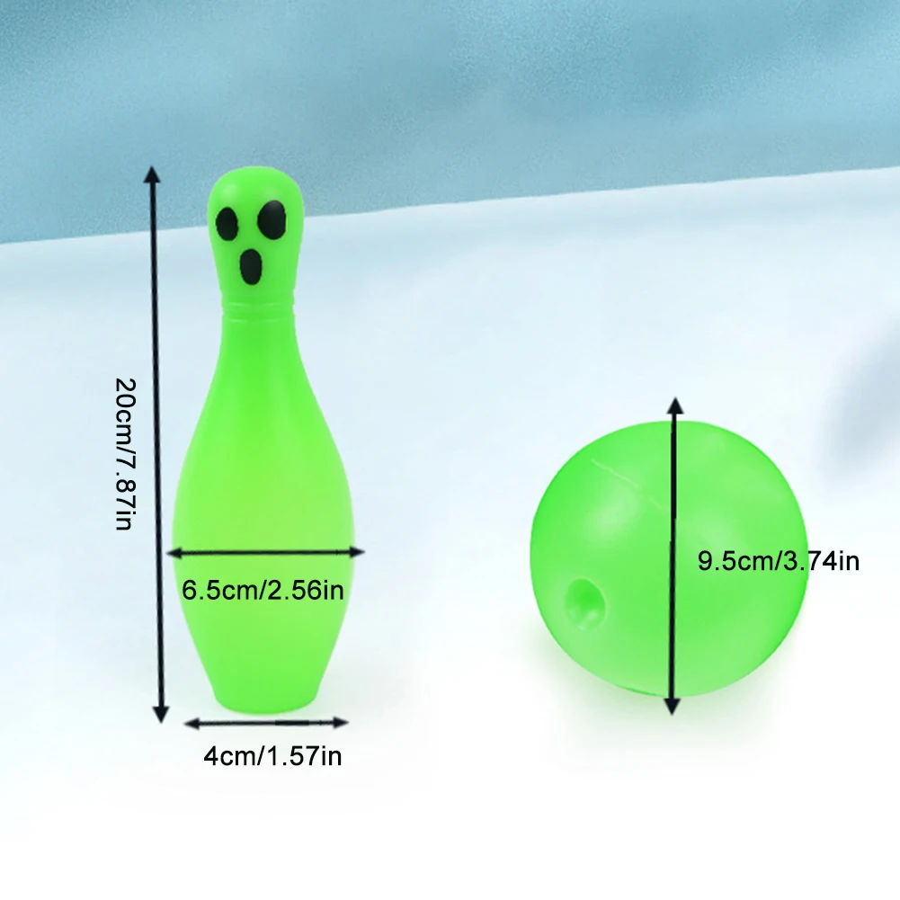 2. Glow-in-the-Dark Fun: Experience the thrill of glow-in-the-dark bowling with this creative ghost bowling set. The balls absorb light and emit a luminous glow, creating an enchanting atmosphere. If the glow fades, simply recharge them using a flashlight or your phone’s torch for continuous enjoyment.