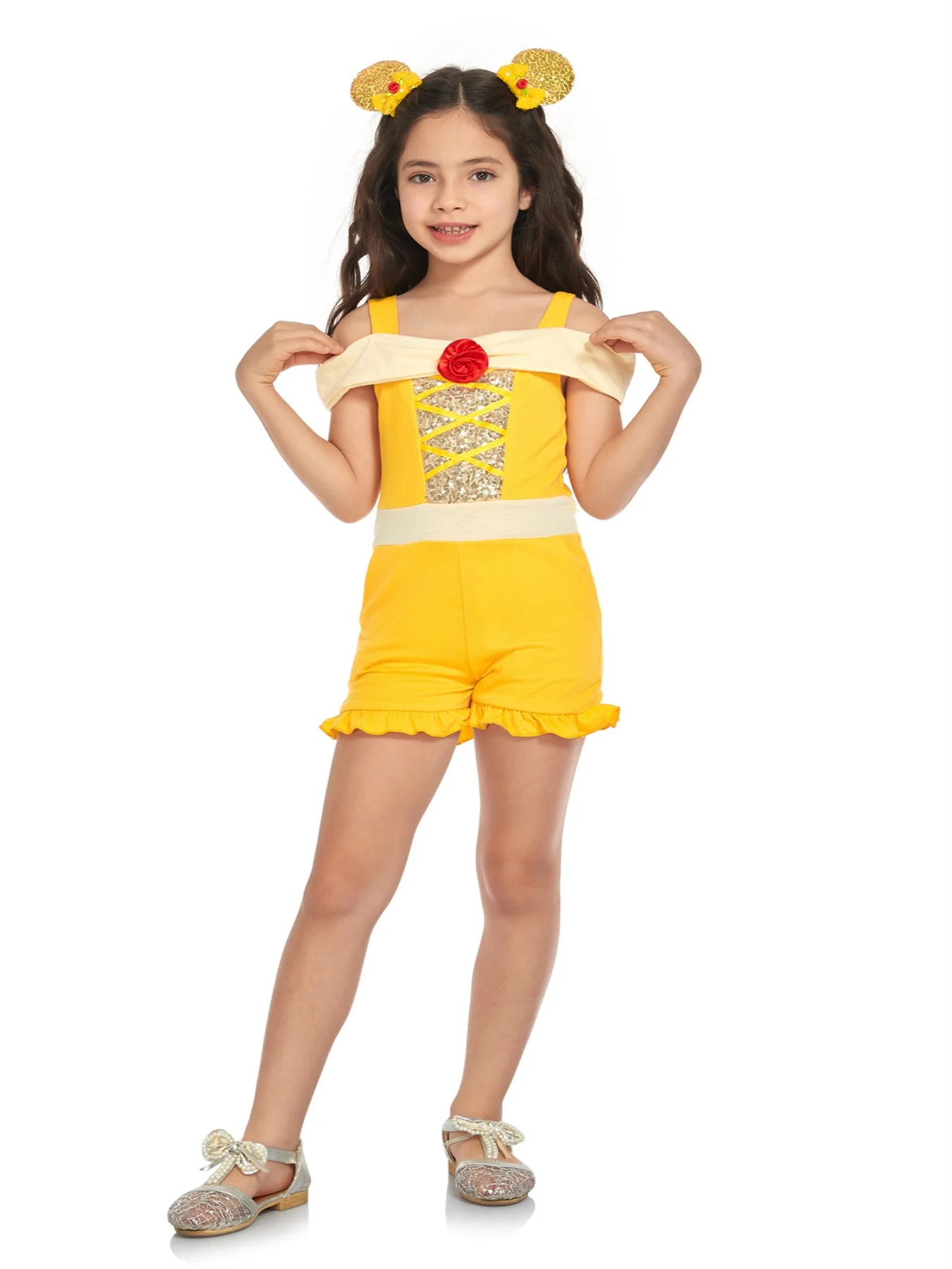 This belle romper is tied with ariel’s. Super adorable and i love how the sleeves fall to the side. Great quality, has pockets, and is overall super comfortable for my girls