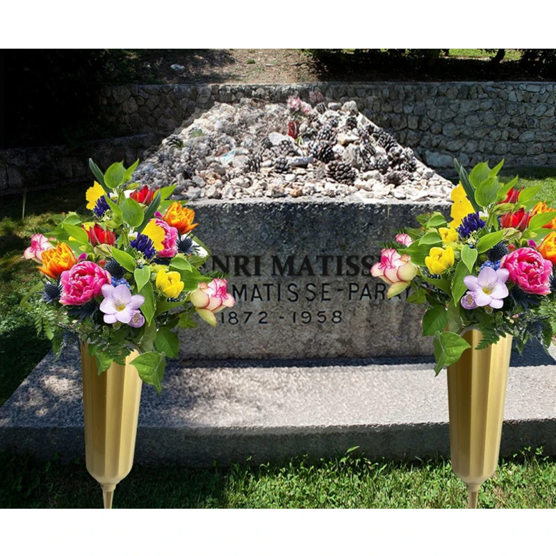 For flower arrangement, you can to put the realistic artificial flower into the grave vase.