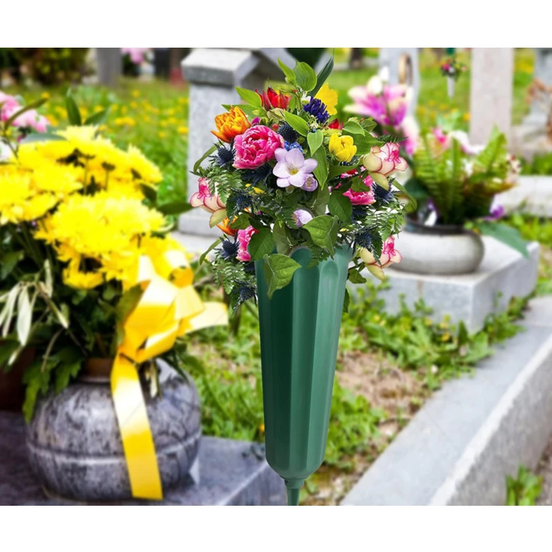 As the plastic grave vase is designed with unique shape, can be inserted to the soil more firmly.