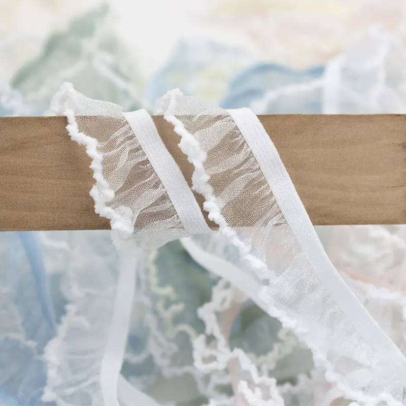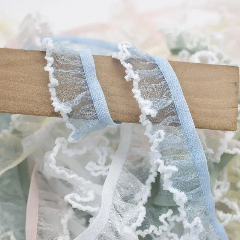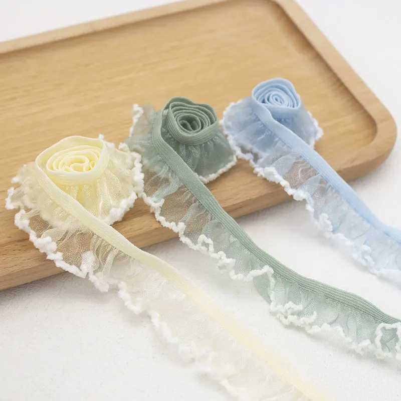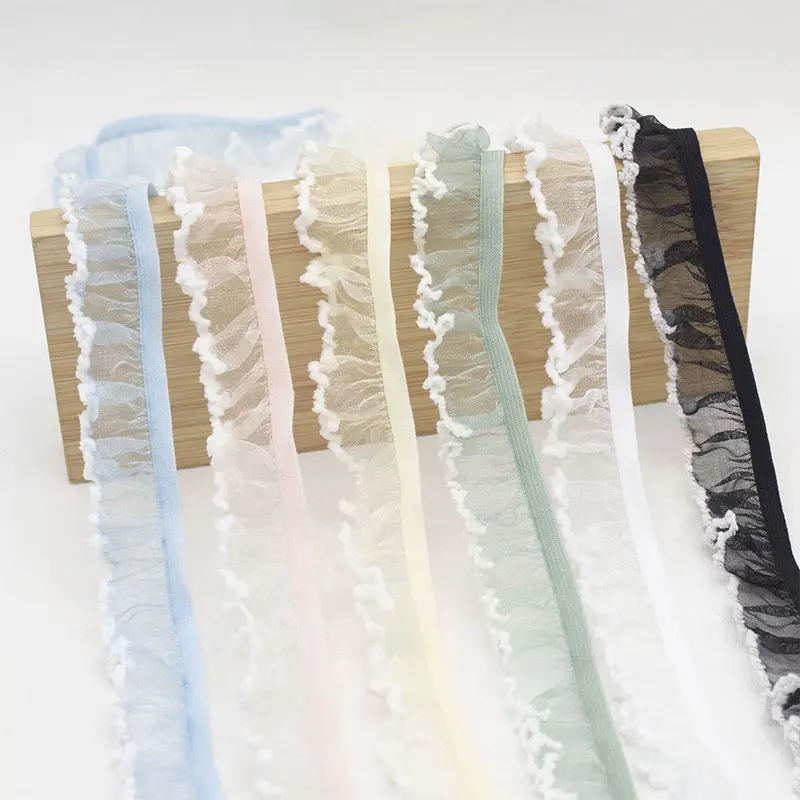 2/5/10meter Elastic Ruffle Lace Ribbon Sheer Chiffon Trim Lace Fabric Ribbon for DIY Apparel Sewing Handmade Accessories 2cm