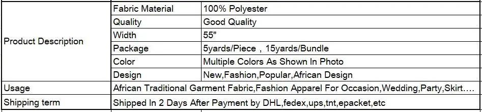 - Packing: 5 Yards/pcs