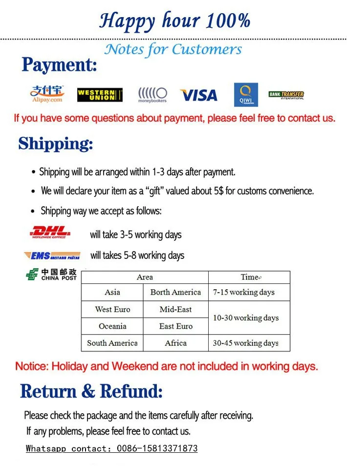 We will check the quality carefully before sending out,and your satisfation is guranteed!