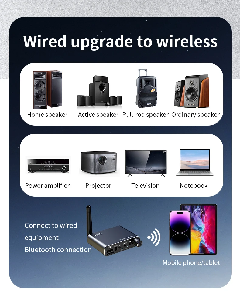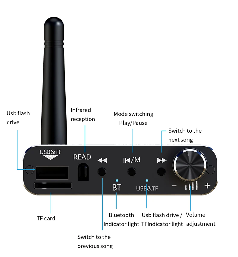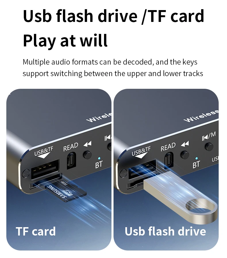6.Playback Method:Blutooth/U-Disk/TF Card