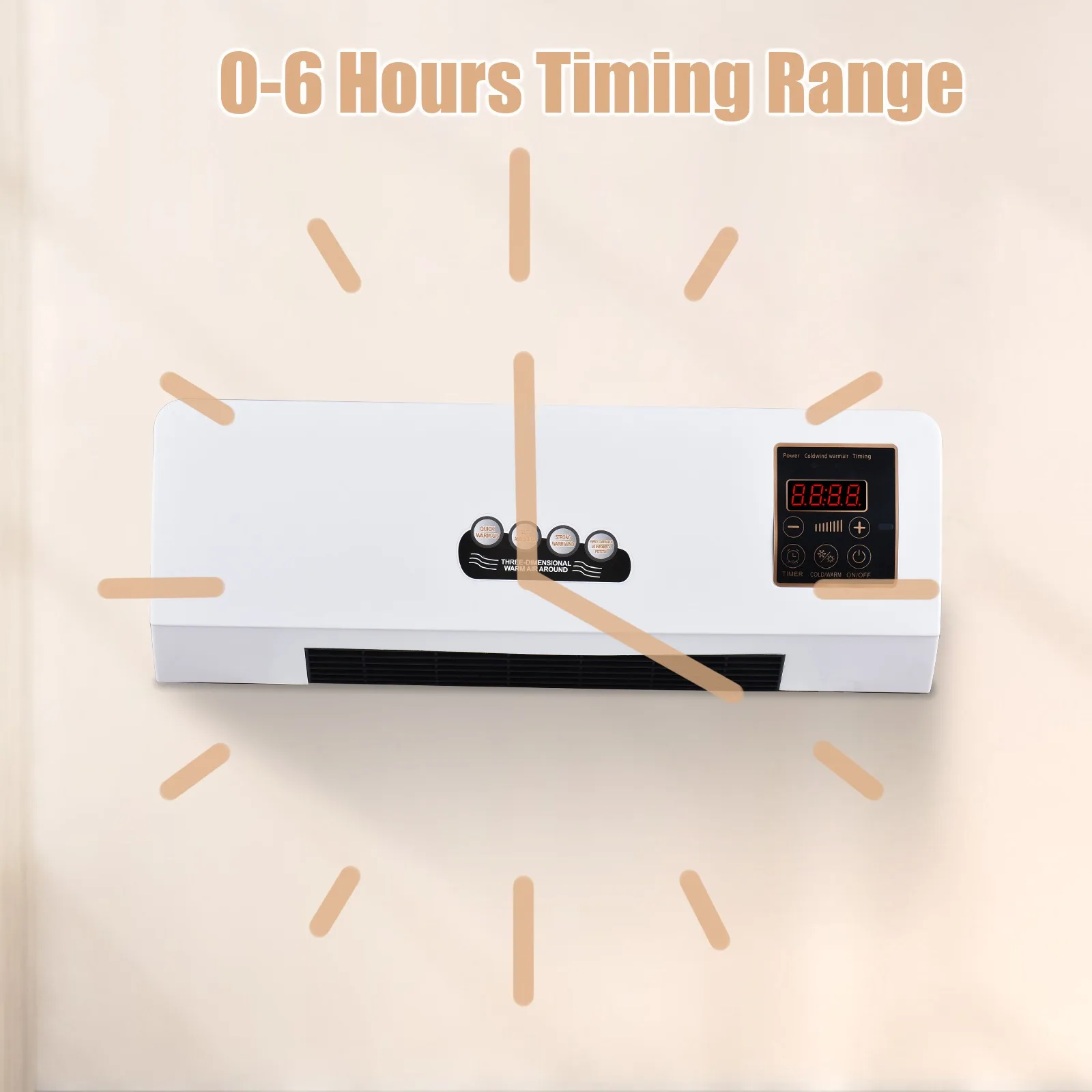 Timing Function: With a built-in 0-6 hours timer function, you can set the heater with fan to turn on or off at specific times, helping you save energy and reduce your electricity bill.