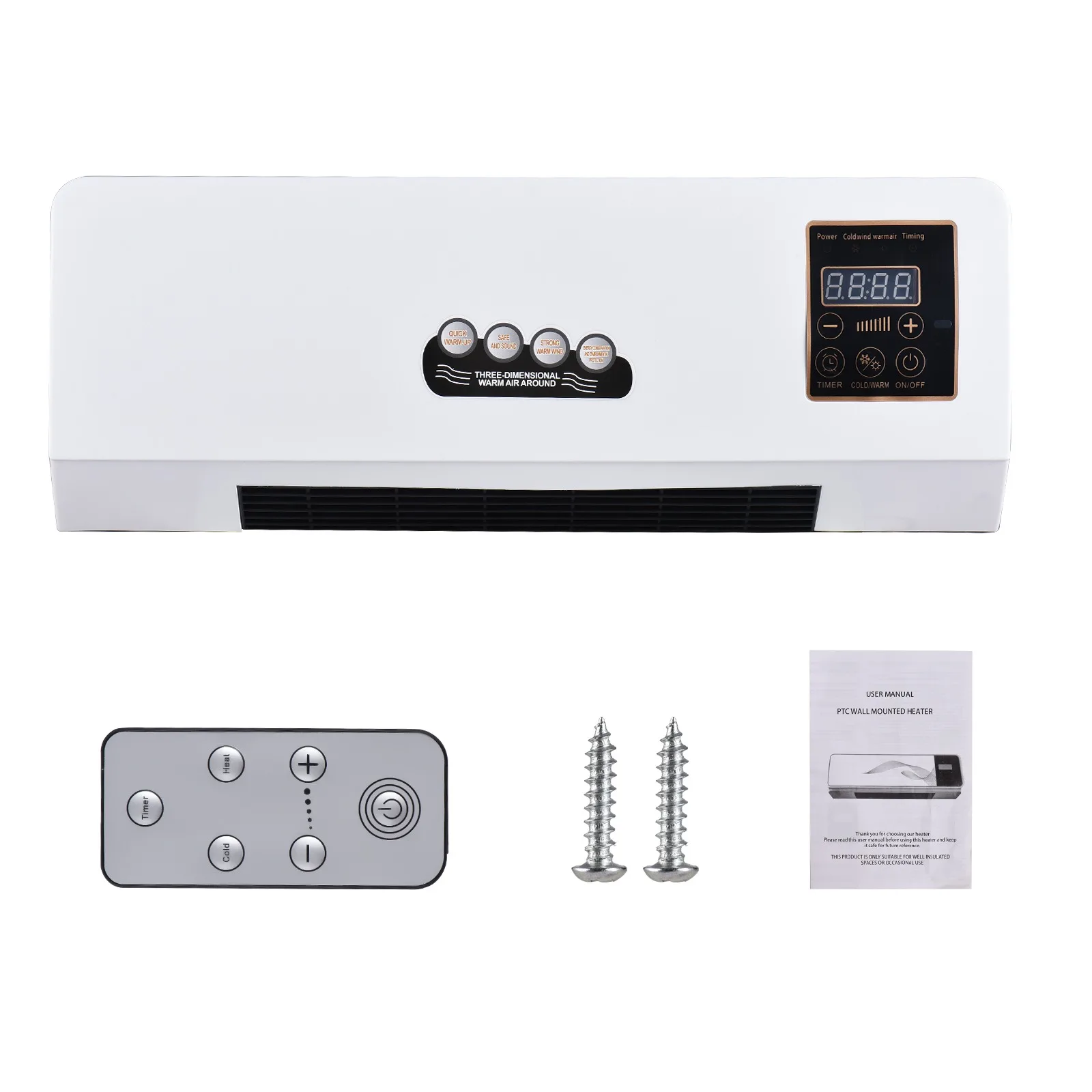 Wall Mounted Design: The electric heater and fan combo is designed for easy wall mount installation, allowing you to save floor space and keep your room clutter-free.