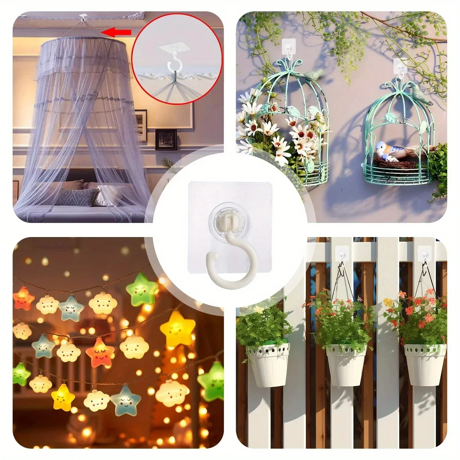 Adhesive hook of great viscosity ensuring quality and longevity,support hanging large capacity and keeps multiple items in place without worry about falling.