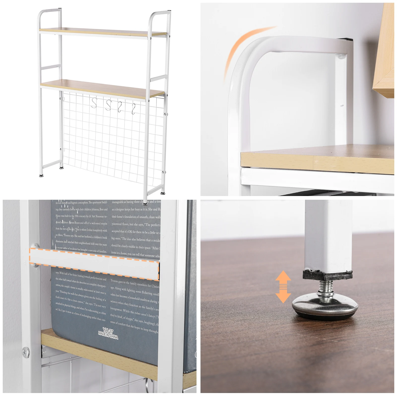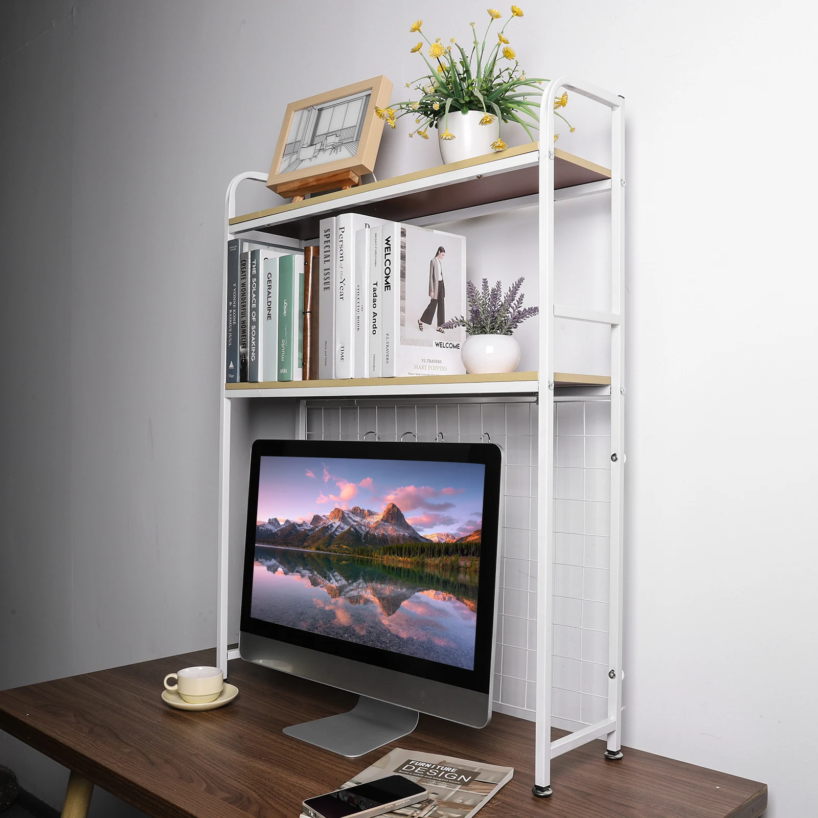 2 Tier Wooden Desk Organiser Shelf with Grid Panel Countertop Storage Rack Multipurpose Desktop Decorative Rack for Computer Desk
