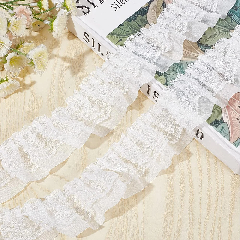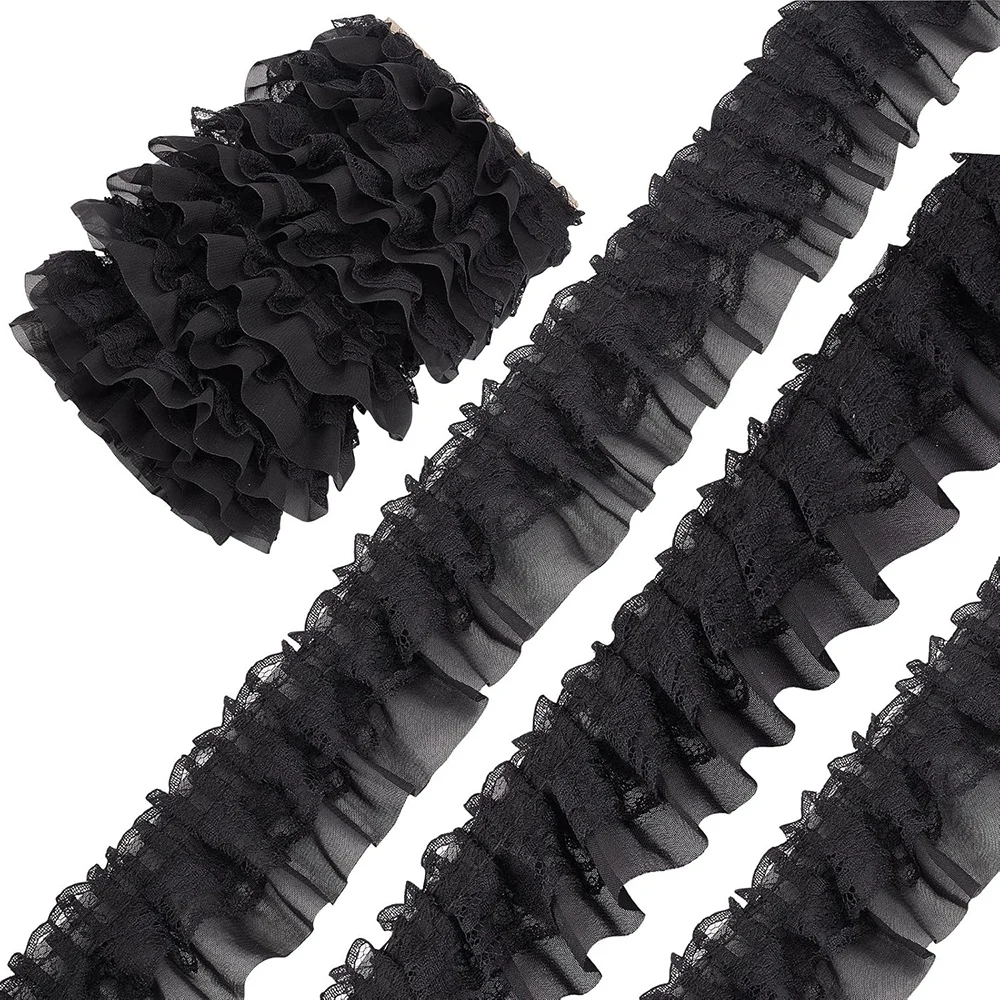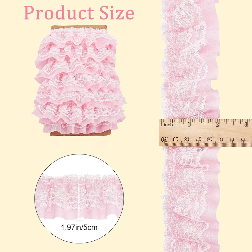 2 Yards Black White Pink Fold Wave Embroidery Lace Fabric Trim DIY Clothing Daily Home Decoration Accessory 5CM Wide
