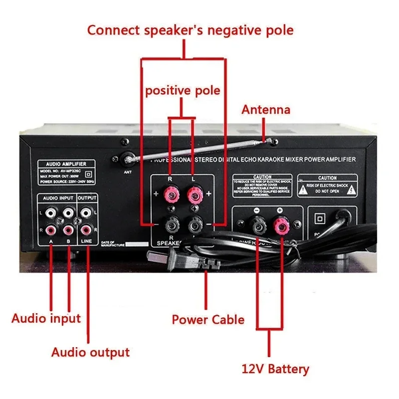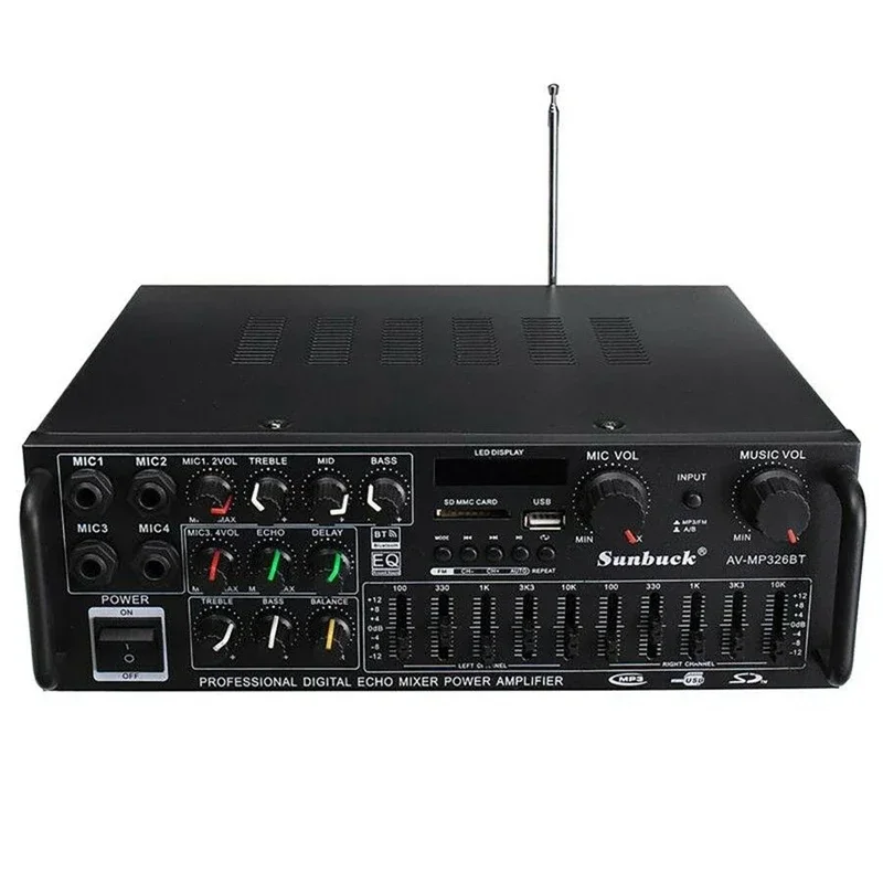 Audio Power Amplifier 2000W bluetooth HiFi Amp Speaker 12V AV Amp Speaker Remote Control For Car Home Square Dancing 2.0 Channel