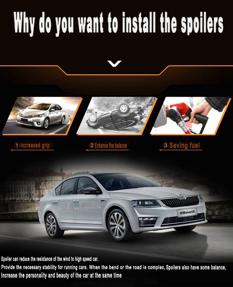 - Placement on Vehicle: rear window roof spoiler