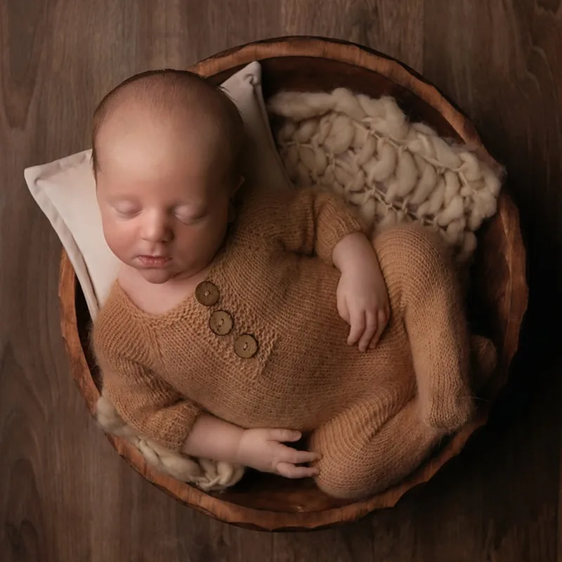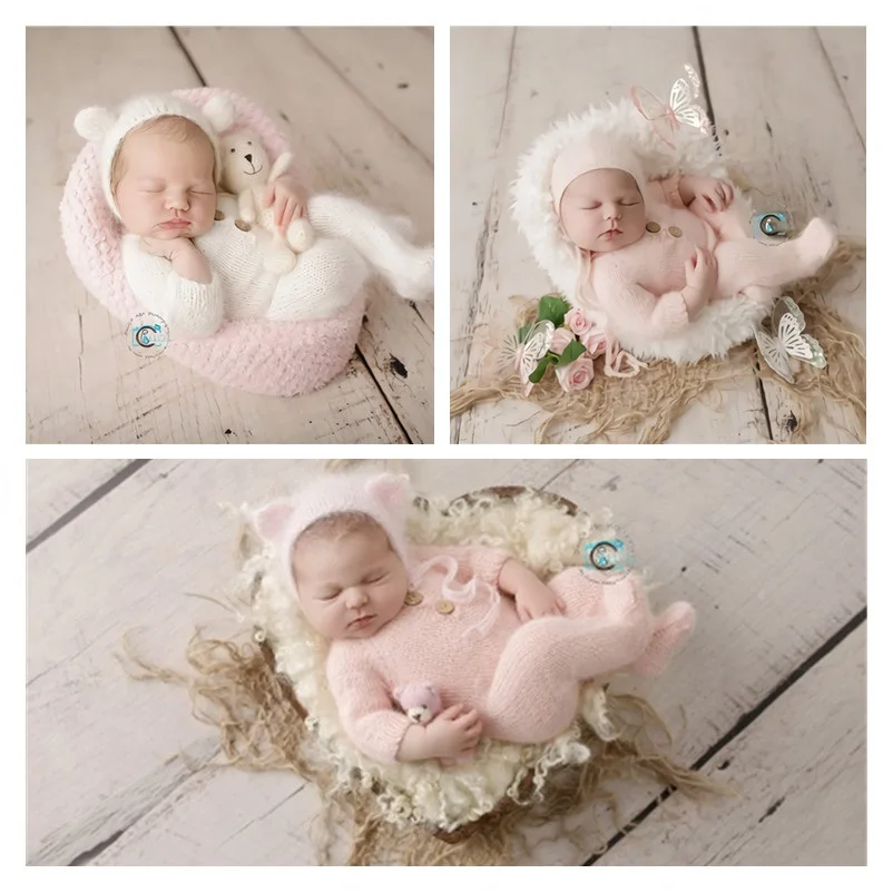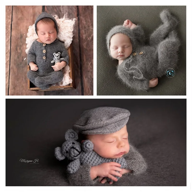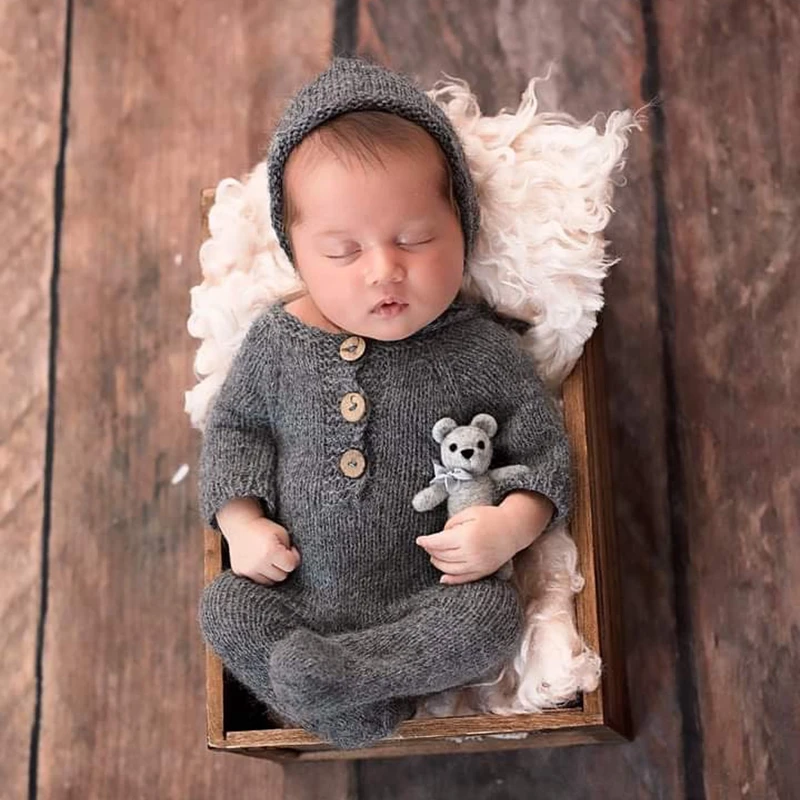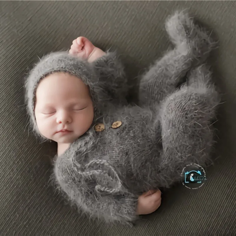2023 handmade footed romper for newborn photography props,soft stretch mink yarn outfits for baby photo shoot