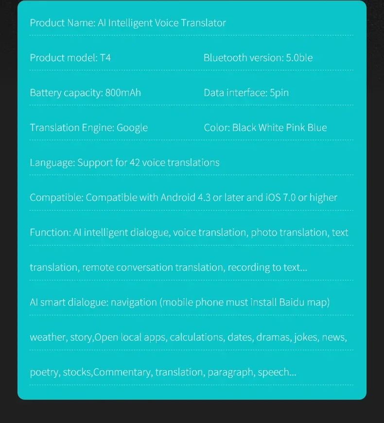 2. When using the Bluetooth translation function, please speak after the prompt tone, then release the button after the speech is finished to ensure that the voice of the recognized translation is complete.