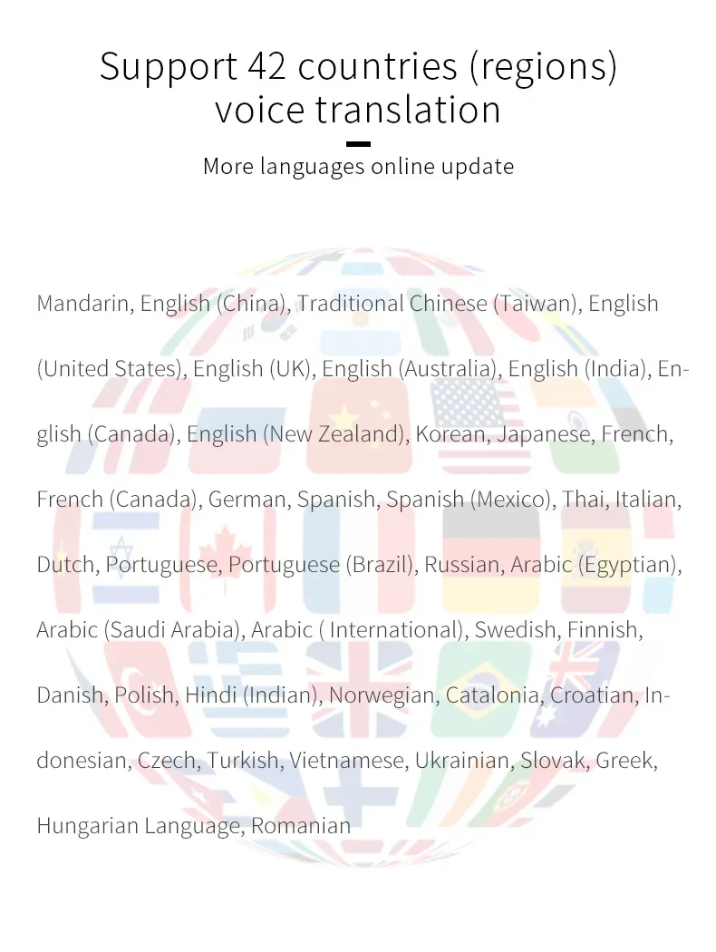 7. Applicable scene: Suitable for traveling abroad, avoiding gesture-based communication, enjoying the world scenery, eating the world food, and making foreign friends. Business communication: Solving language problems and making communication easier.
