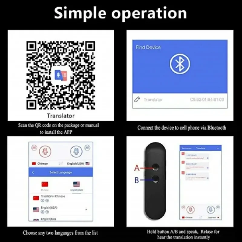 (1) The mobile phone connects to the Wifi or mobile network, scans the QR code on the product, and downloads the translator's translation APP;
