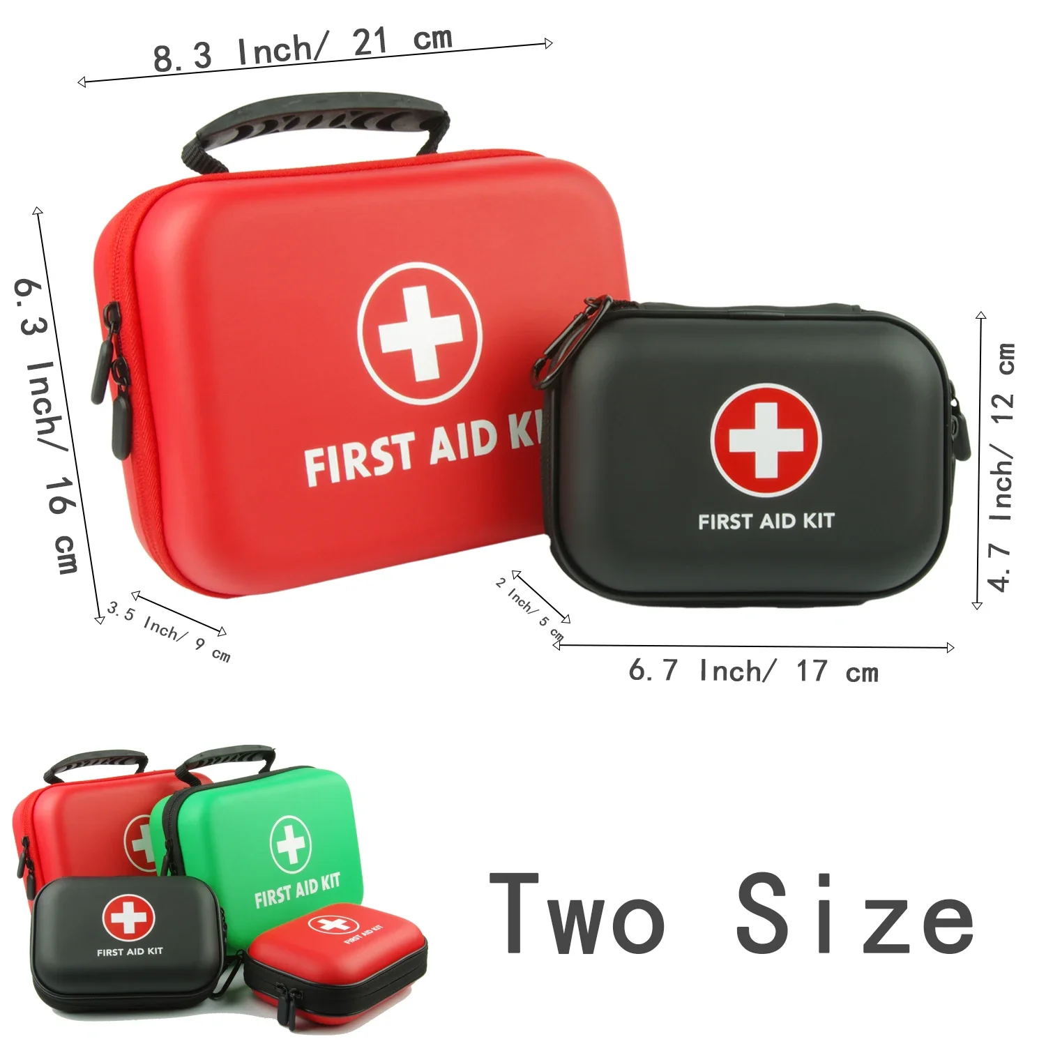 Compact High-end first aid kit (8.3”×6.3”×3.5”). Using EVA mold case that is Lightweight, shockproof and not easily deformed. The PU surface is smooth, waterproof and easy to clean with Waterproof Laminate Bags You Protect Your Supplies(Do not soak).