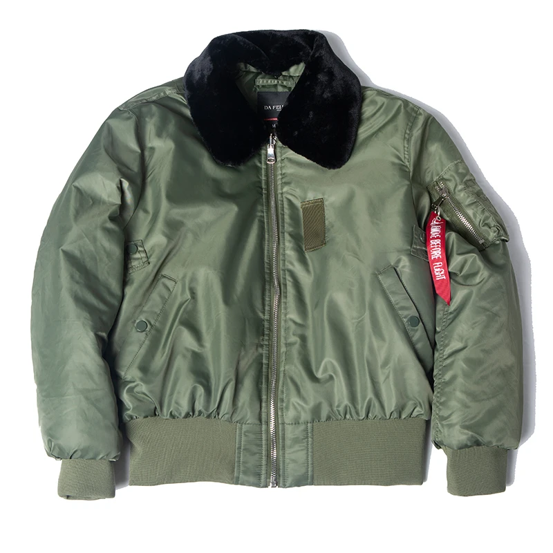 All nylon flight jacket was originated from B-15. However, it has a fur collar which hinders the movement of parachute ropes.