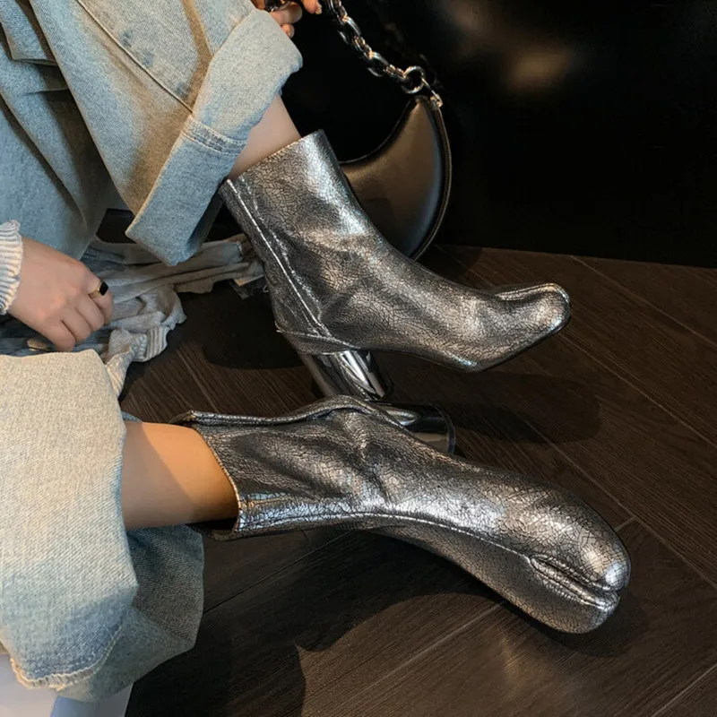 2026 Autumn Winter Soft Leather Split toe Tabi Women Ankle Boots Fashion Zip Thick High heels Chelsea Chunky Shoes Short Booties