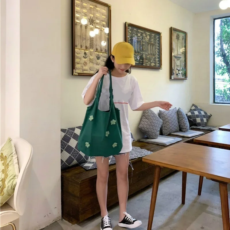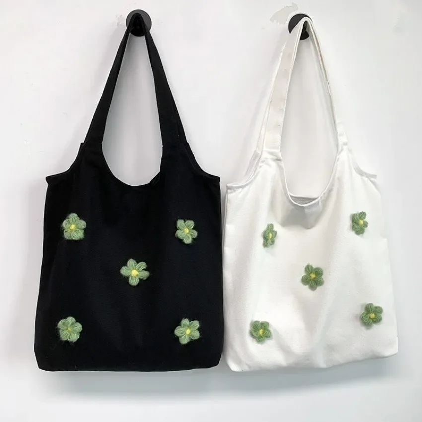 Small Fresh Art Flower Canvas Bag Fashion One Shoulder Handheld Student Minimalist Travel Ins Japanese Shopping Bag Cloth Bags