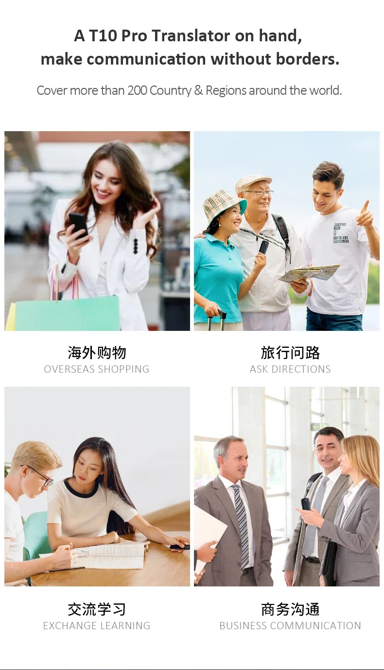 Item Type: Language Translator Material: ABS Model: T10 Pro Battery Capacity: Built in 1500mah Lithium Battery (included) Screen Size: 2.4 inch Touch Screen Resolution: 240×320 Networking Mode: WIFI Networking Camera: 500W Pixels Data Interface: