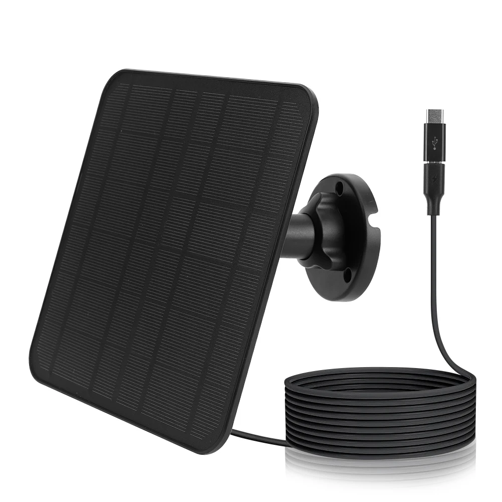![]() 5V 6W Solar Panel IP65 Waterproof Outdoor Surveillance Power Micro USB & USB-C Port 9.8 Ft Charging Cable 360°Adjustable Mounting for Security Camera for Eufycam 3 S330/3C S300/2/2C/2 Pro Outdoor Wireless Security Camera Feature: 1.Continuous Solar Power: Our upgraded solar panel boasts higher conversion efficiency compared to other solar batteries. With a substantial 6W power output and monocrystalline silicon material, it achieves a conversion rate of 19-22% (subject to sunlight intensity). You can confidently rely on it for long trips without worrying about running out of power, saving you time and money. (Please ensure installation in a sunlit area.) 2.Built-in IC Voltage Regulation: It provides a stable output voltage regardless of input voltage fluctuations, ensuring it stays within the set range. This prevents damage to your devices caused by excessive or low voltage. camera solar panel offers overload protection and short circuit protection, automatically cutting off the current in cases of overload or short circuits to prevent device damage. This enhances the reliability and lifespan of your devices. 3.Flexible Installation: The solar panel charger comes with a 360-degree adjustable bracket and is foldable. It allows easy adjustment of the panel's angle and position. You can rotate it upwards, downwards, left, or right according to your needs, maximizing sunlight absorption for your cameras. It offers the freedom to securely mount the solar panel on walls, rooftops, gardens, or any suitable location. 4.IP65 Waterproof and Weatherproof: Designed with weather-resistant materials, the solar charging panel can withstand harsh conditions, including rain, snow, extreme cold, and heat, making it suitable for outdoor use. With a 3-meter power cable, it provides flexibility for charging your devices indoors or outdoors. You can install it anywhere outdoors with abundant sunlight, ensuring stable solar power for your security cameras. 5.Wide Compatibility: The solar cell panel features a Micro USB + Type-C 2-in-1 charging interface, offering broader compatibility. However, please ensure waterproof protection at the interface. It is compatible with electronic products powered by rechargeable batteries with Micro USB and USB-C ports, such as for EufyCam 3 (S330)/3C (S300)/2/2C/2 Pro, and other brands/models of security cameras, smart doorbells, cameras, yard lights, etc. Please note that it is not suitable for Ring, for Arlo, for Blink, and similar plug-in cameras. Specification: Cable length: 3 Meters approx. Selling Points: Note: ![]() 1 X Solar Panel With 3 Meters Charging Cable Micro Usb Interface 1 X Screw Pack 1 X Base 1 X Type C Adapter ![]() ![]() ![]() ![]() ![]() ![]() ![]() ![]() ![]() ![]() ![]() ![]() ![]() ![]() ![]() ![]() ![]() ![]() ![]()