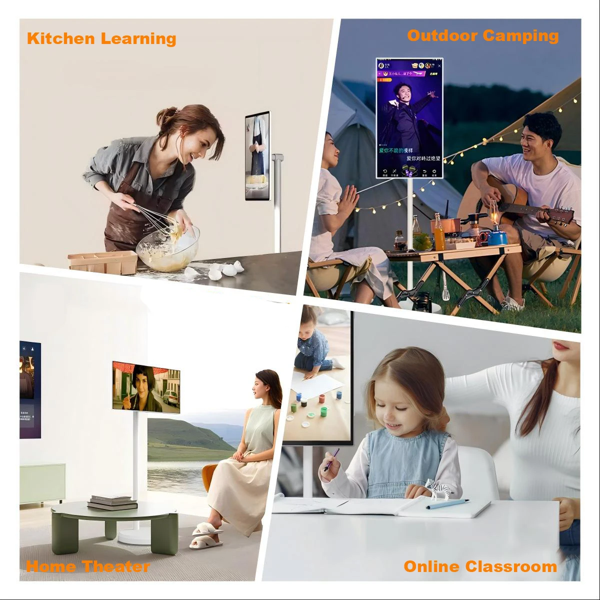 Touchscreen, Android system, built-in battery, easy to move — perfect for home, school, office, or retail.Your smart, portable screen starts here.