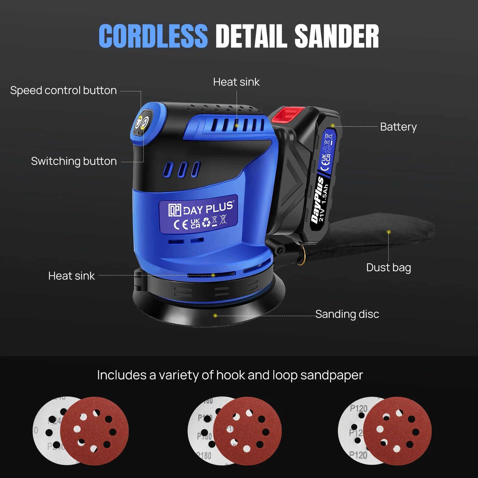 Efficient Dust Collection: Includes a dust bag to minimize debris, keeping your workspace cleaner and improving visibility while sanding.