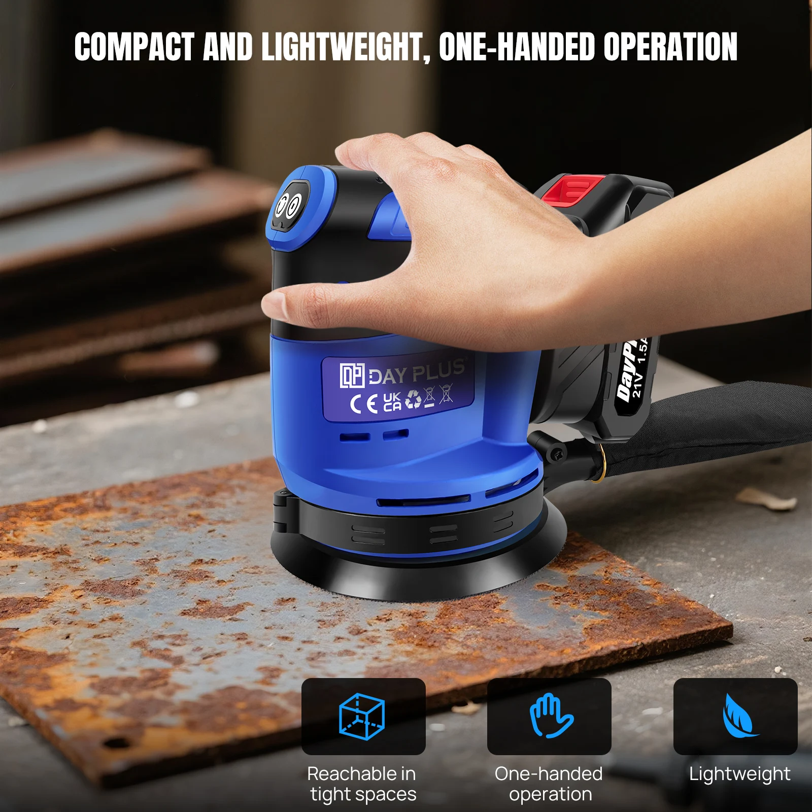 2.8mm Random Orbit & 14000-22000 SPM: Delivers swirl-free sanding with smooth, professional results on wood, metal, and painted surfaces.