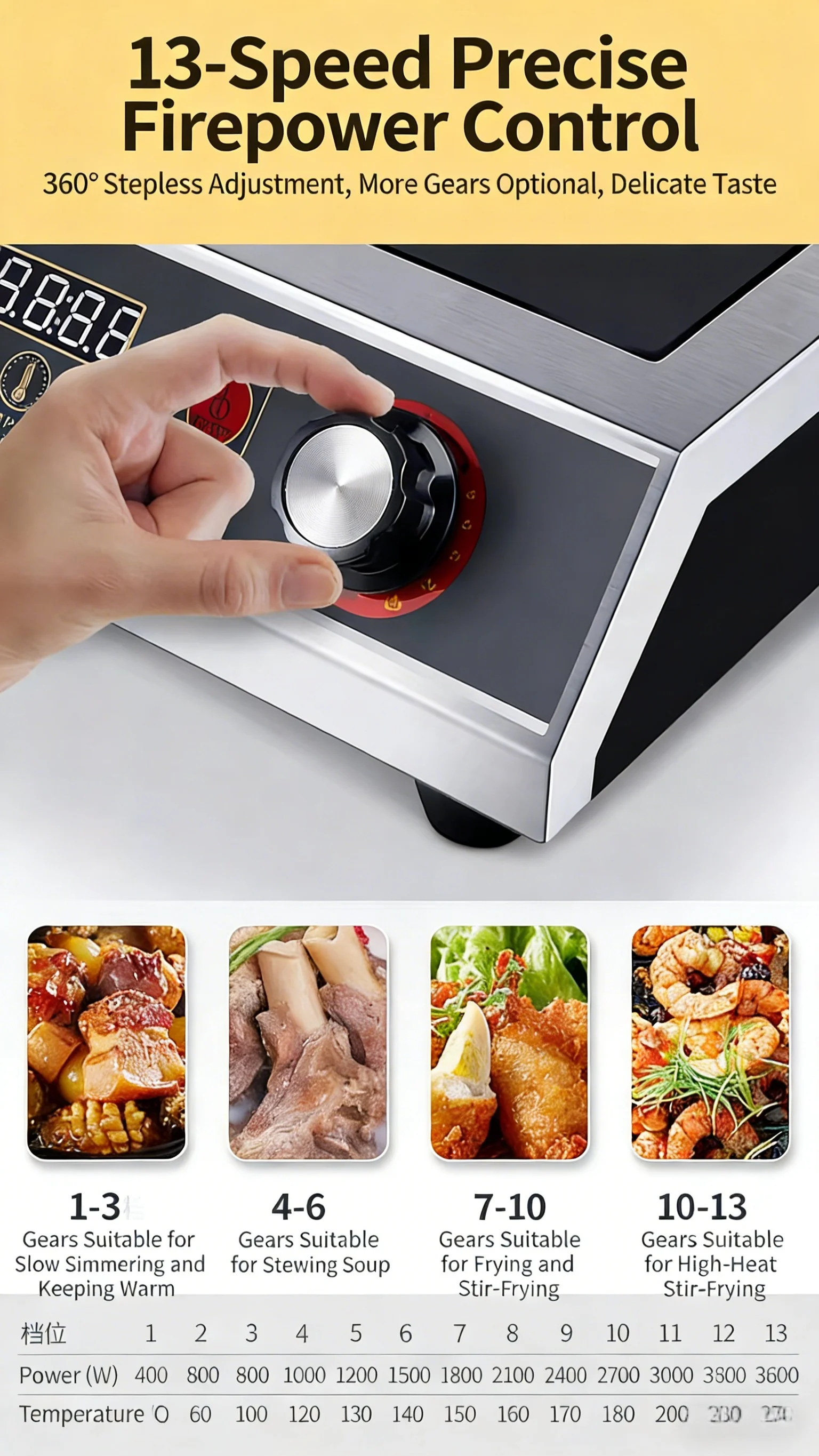 – The contact bottom of the pot is greater than 120mm and less than 350mm