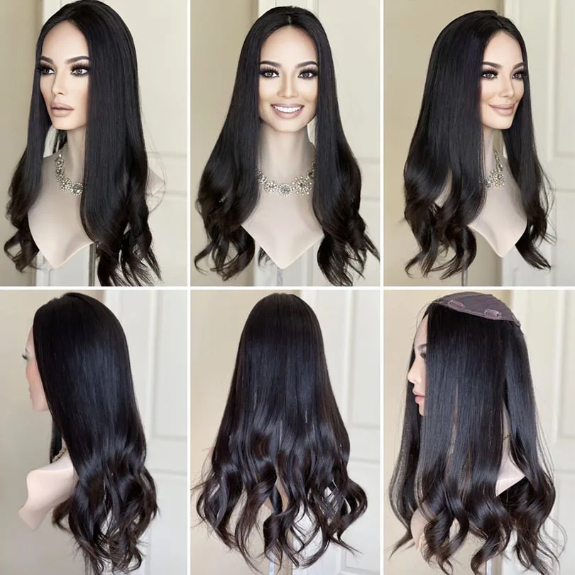 22inch Long Wavy Silk Base Jewish Wigs Full End Virgin Hair Natural Wave Skin Top Silk Topper Wigs Double Drawn Hair For Women