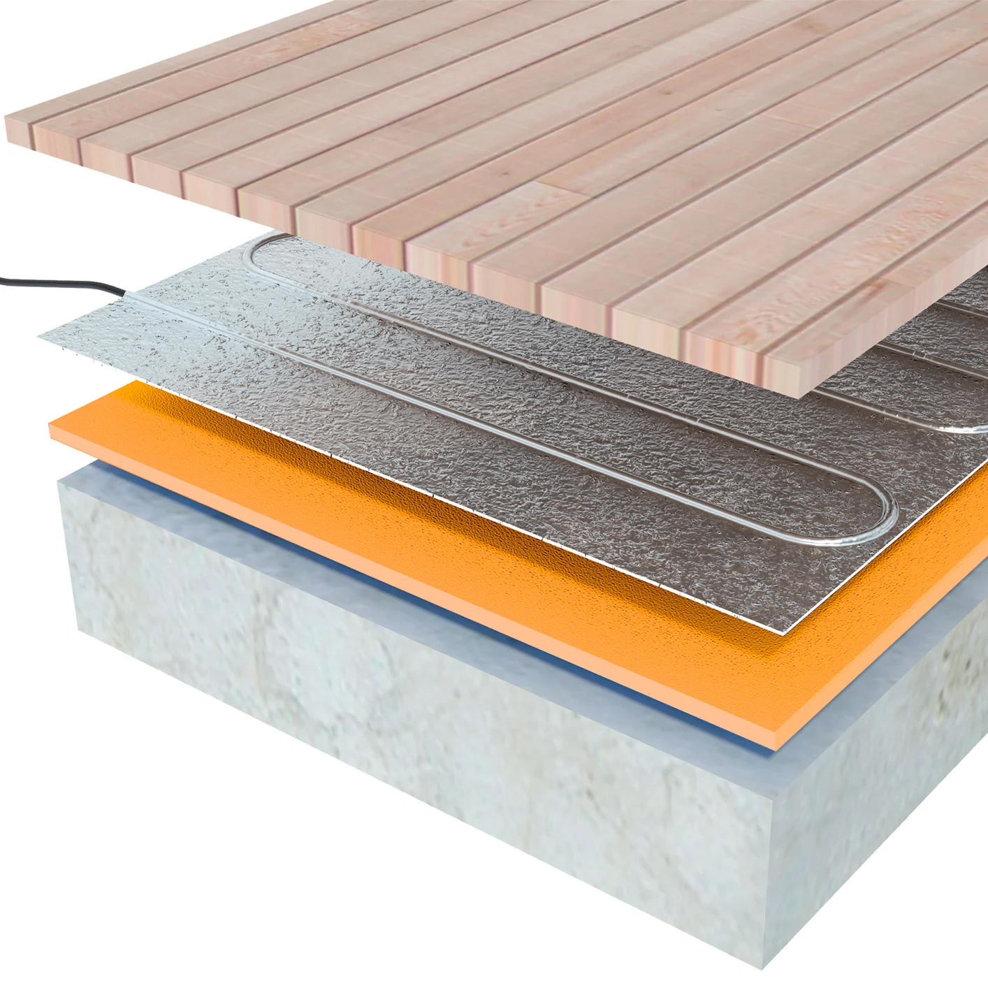 Our System Consists Of a 150w/m2 Cable Mat Which Can Be Rolled Out And Cut To Shape To Fit Any Room. Within The Mat Is a Thin 1.0 Mm Heating Cable Which Is Pre-Woven Into a 500mm Wide Foil Mesh. The Mat Should Be Laid Directly Under The Surface To Be Heated, Pressed Down Under The Wooden/Laminated Floor.