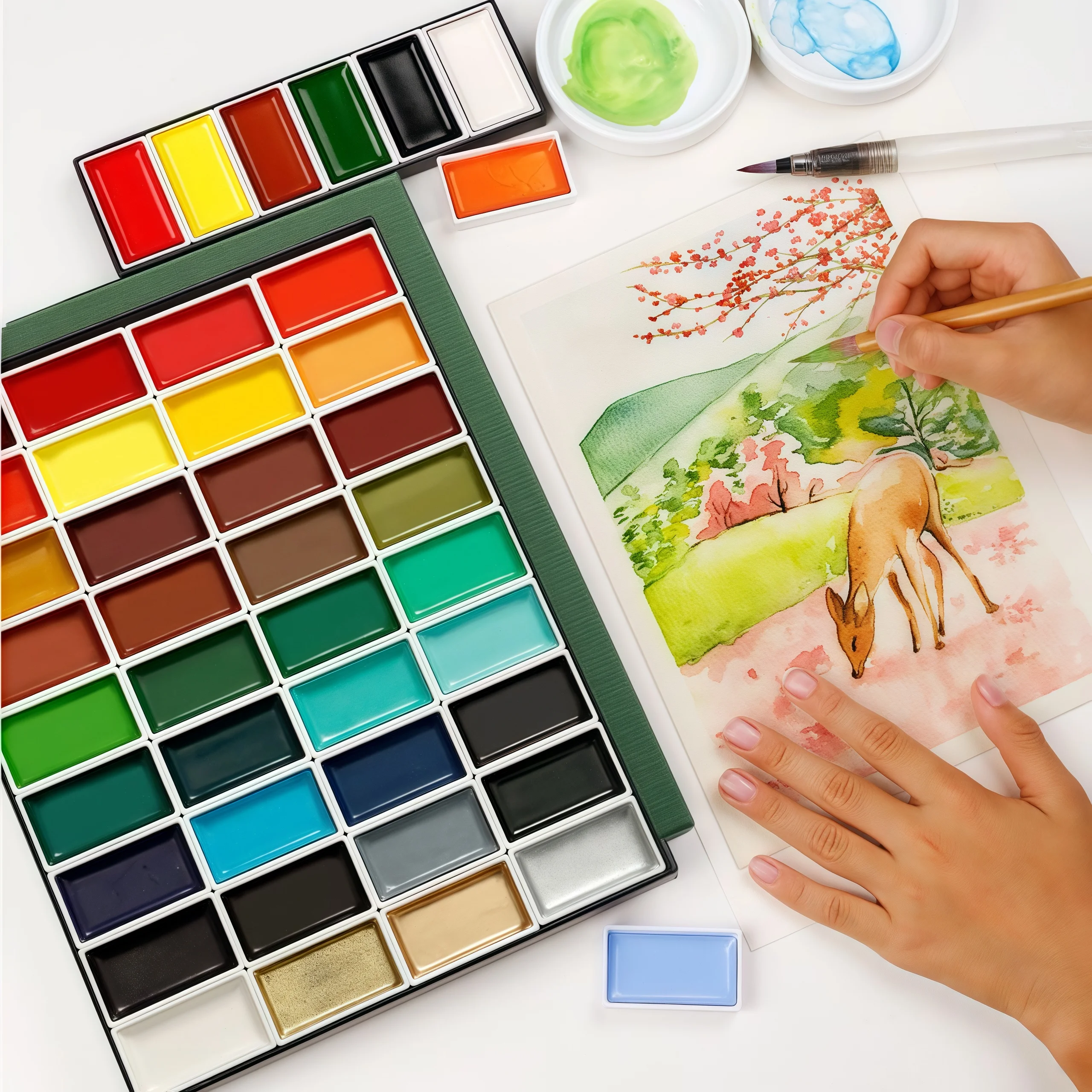 The compact box design makes it easy to carry your watercolor palette wherever inspiration strikes.