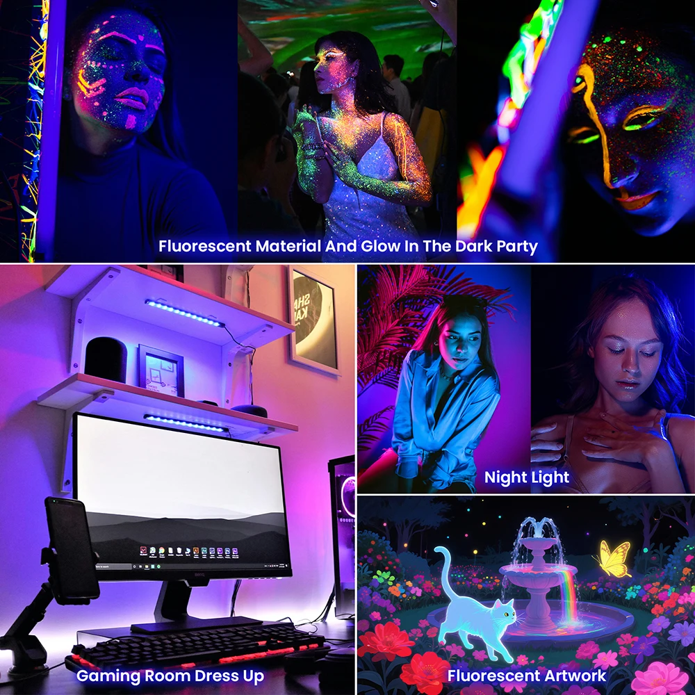 Multi-Purpose UV Lighting: Perfect for glow parties, Halloween decor, fluorescent posters, body paint, and UV-reactive artwork.