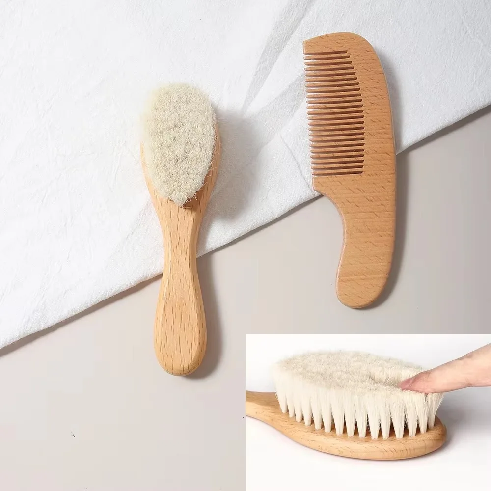2pcs Baby Comb Set Baby Care Hair Brush Beech Soft Wool Wood Comb Newborn Massager Baby Shower And Gift Baby Hair Soothing