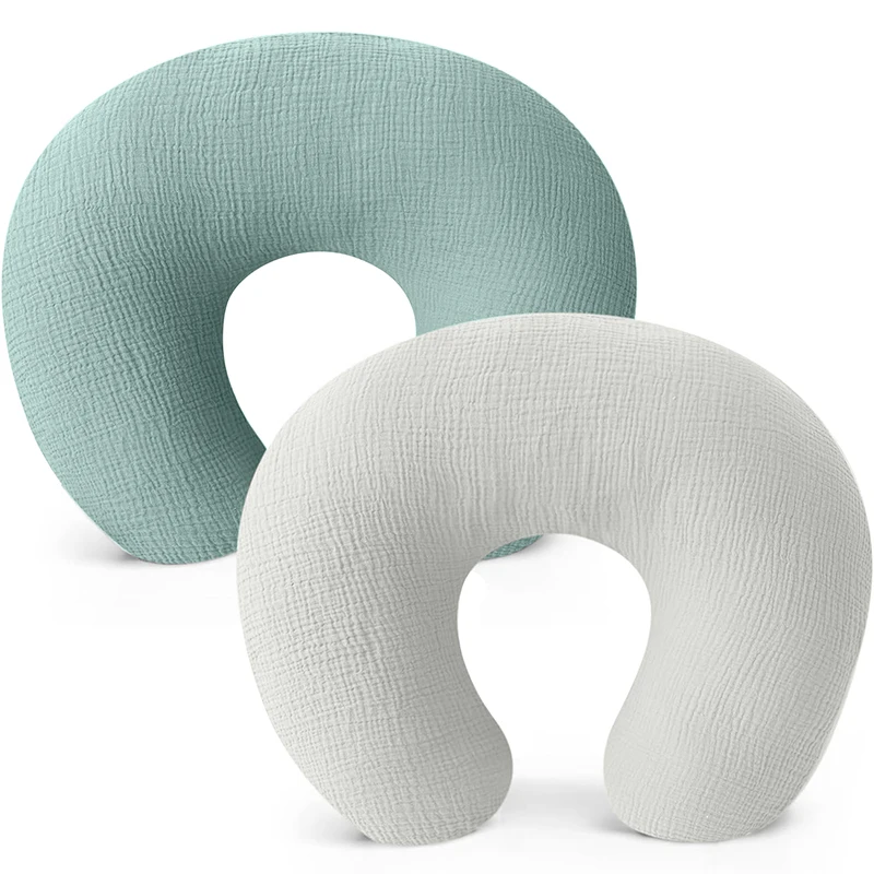 2PCS Nursing Pillow Covers Stretchy Soft Muslin Cotton Nursing Cover for Breastfeeding Pillow Slipcover for Baby Girls Boys