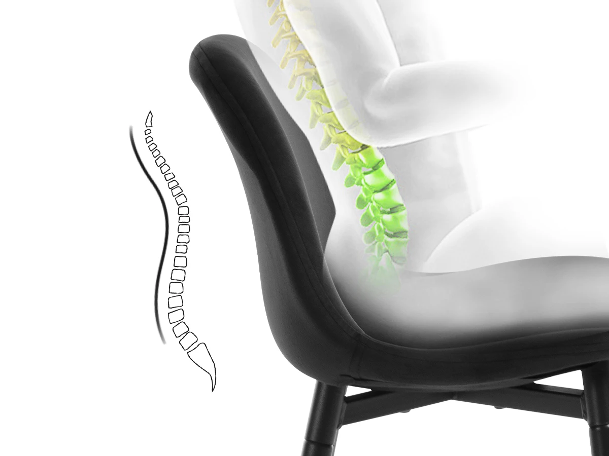 INCREASED COMFORT The bar stools are equipped with a backrest, padded seat and footrest, which ergonomically support the back, hips and feet, allowing for comfortable sitting while eating, talking or kitchen work