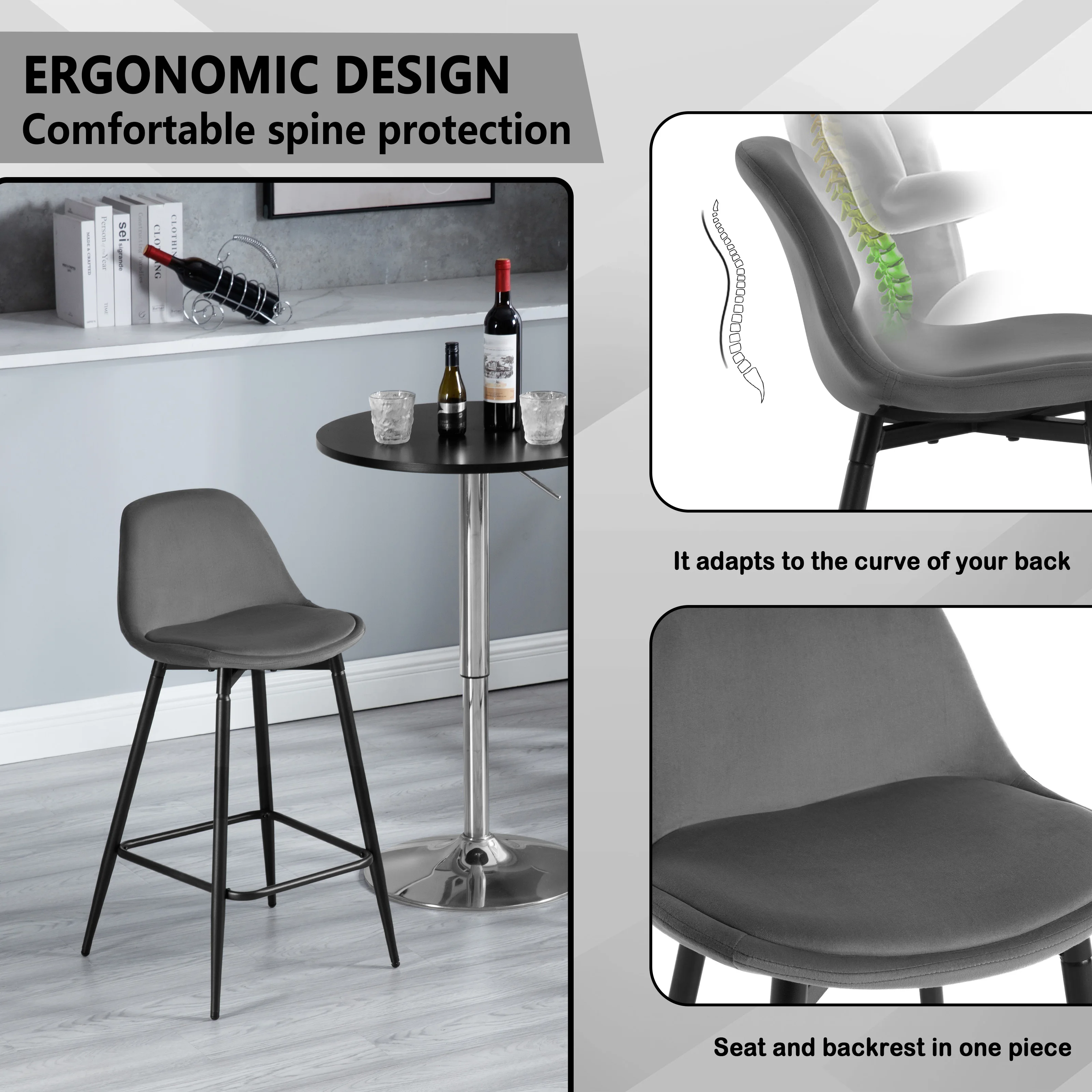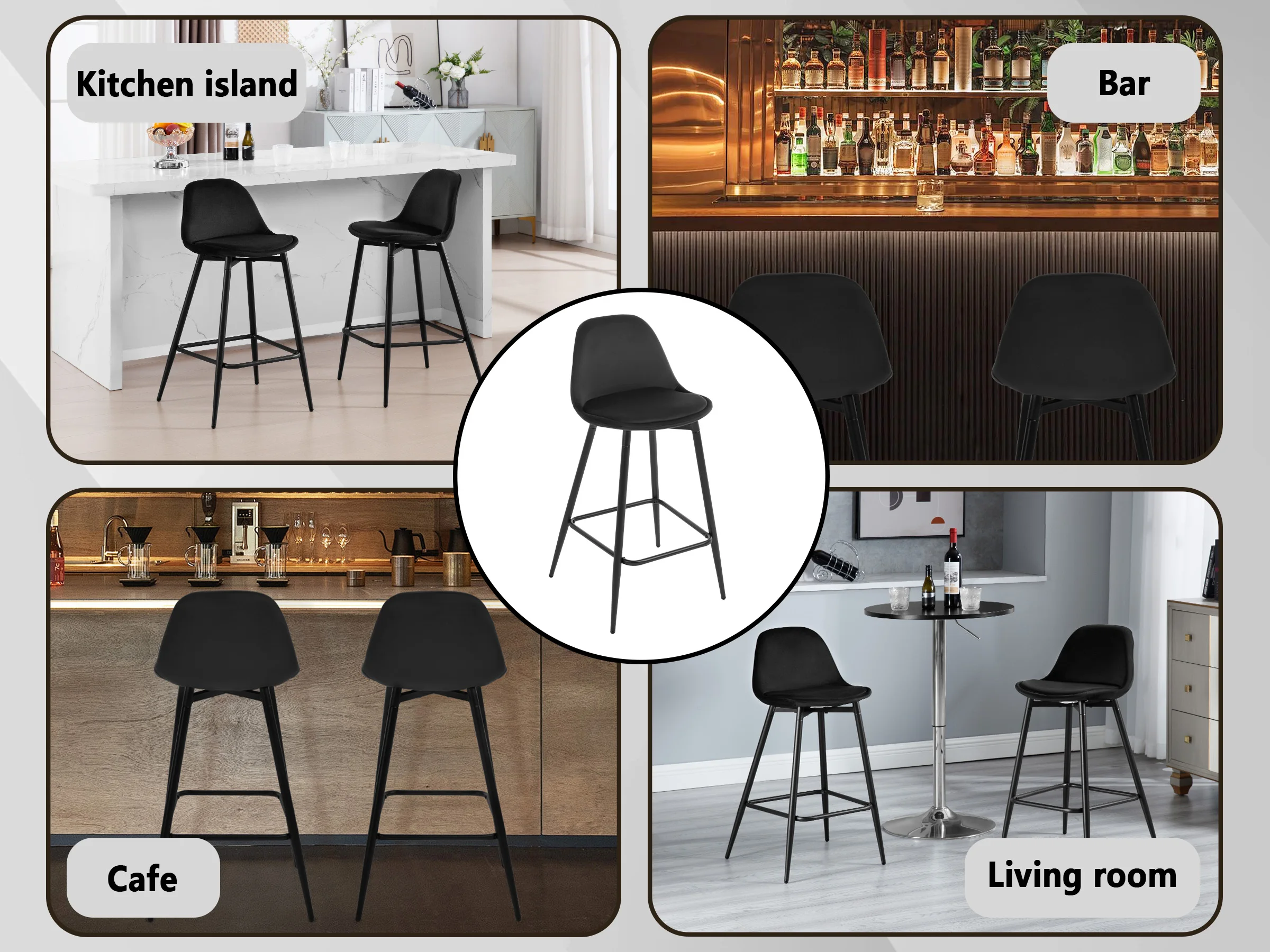 Enhanced Stability The frame of padded bar stools is made of thickened metal, high quality brand new PP and skin-friendly velvet, sturdy and abrasion resistant. The footrest and non-slip foot glides further increase stability and durability. The stools can hold up to 150 kg each.
