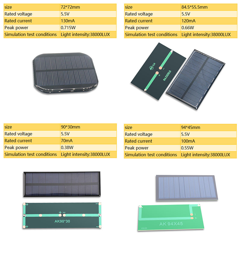| Wattage | 10V300mA150x125Cable, 2V 100mA 60×60, 2V 150mA 60×60, 2V 35mA 2R36mm, 2V 50mA 2R55mm, 3V 100mA 65X48, 4.5V 90mA 77.5X40.5, 4V 130mA 2R 88.5, 5.5V 110mA 95x45mm, 5.5V 120mA 84.5×55.5, 5.5V 130mA 72×72, 5.5V 160mA 140X45, 5.5V 300mA285.5X42.5, 5.5V 60mA 100X28, 5.5V 60mA 90X30, 5.5V 80mA 60X60, 5.5V135mA95.7X57.5C, 5.5V240mA147x90Cable, 5V 200mA 109X83, 5V 200mA 130X60, 5V 30mA 44X24, 5V 50mA 107X26, 5V 50mA 60X44, 5V 60mA 67.2X34.7, 5V 60mA 80X45, 5V230mA100.8X82.5, 6V 150mA 80×80, 6V 183mA 133x72Cable, 6V 220mA 120x90Cable, 6V250mA 165x65Cable, 6V500mA 145x145Cable, 7V120mA 110x110Cable |