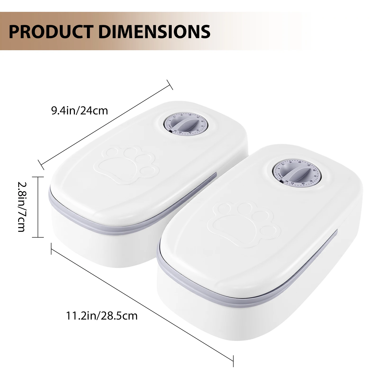 🐱🐈【Excellent Design】The automatic pet feeder is perfect for families with two cats or small dogs, two independent timers provide up to 700ml of wet and dry food, enough to support two meals for small to medium sized pets. The top lid makes it easy to keep the cat feeder and bowls clean and promotes a healthy eating environment.