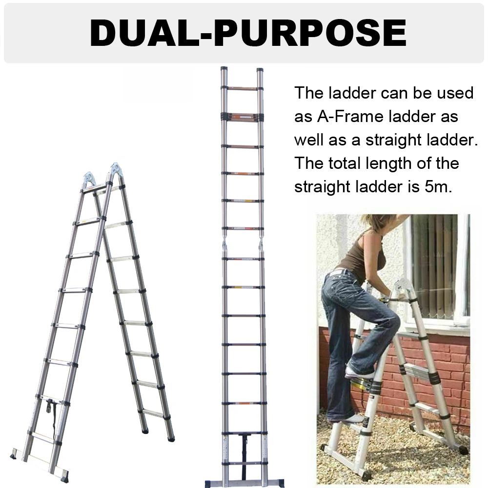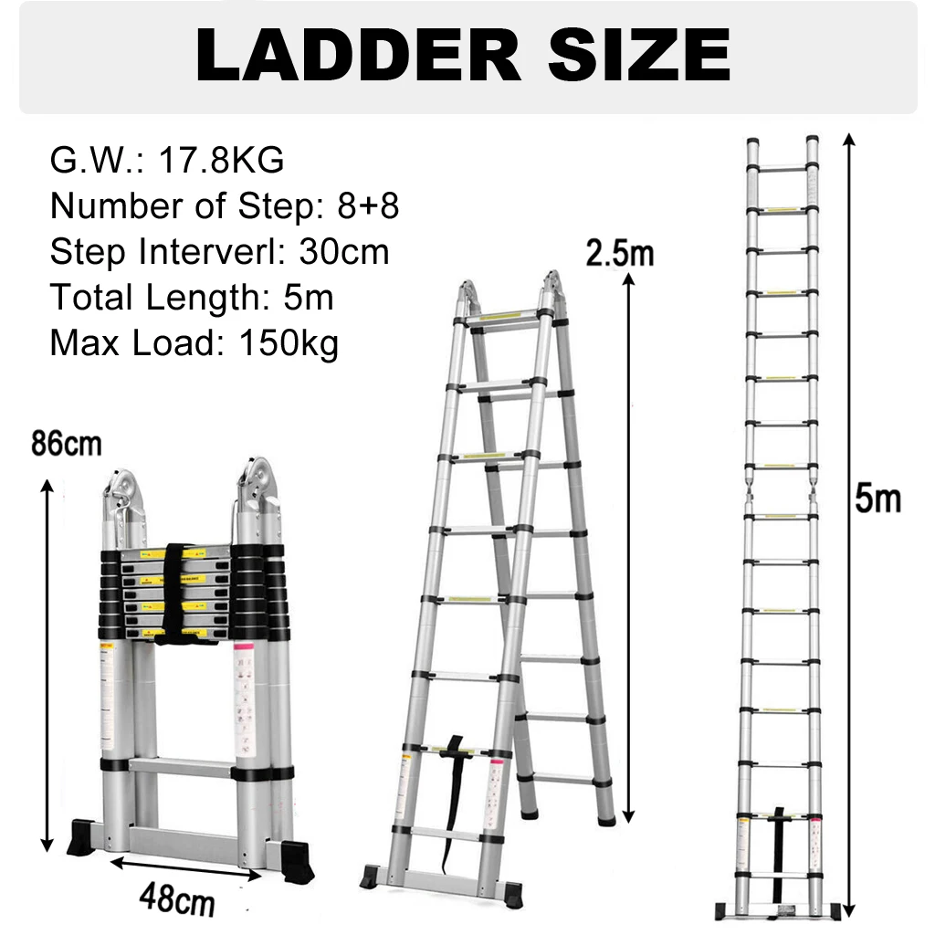5m (2.5m + 2.5m)/(8.2ft + 8.2ft) Folding Telescopic Ladder