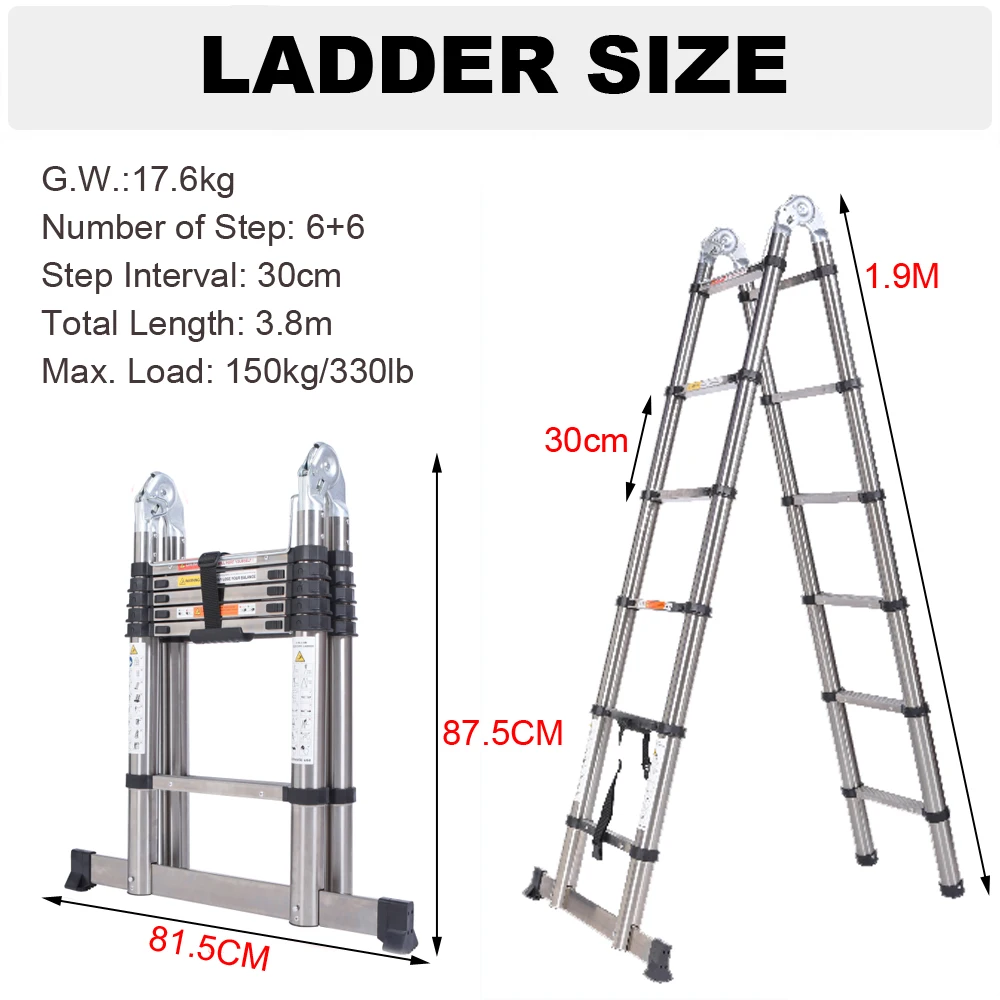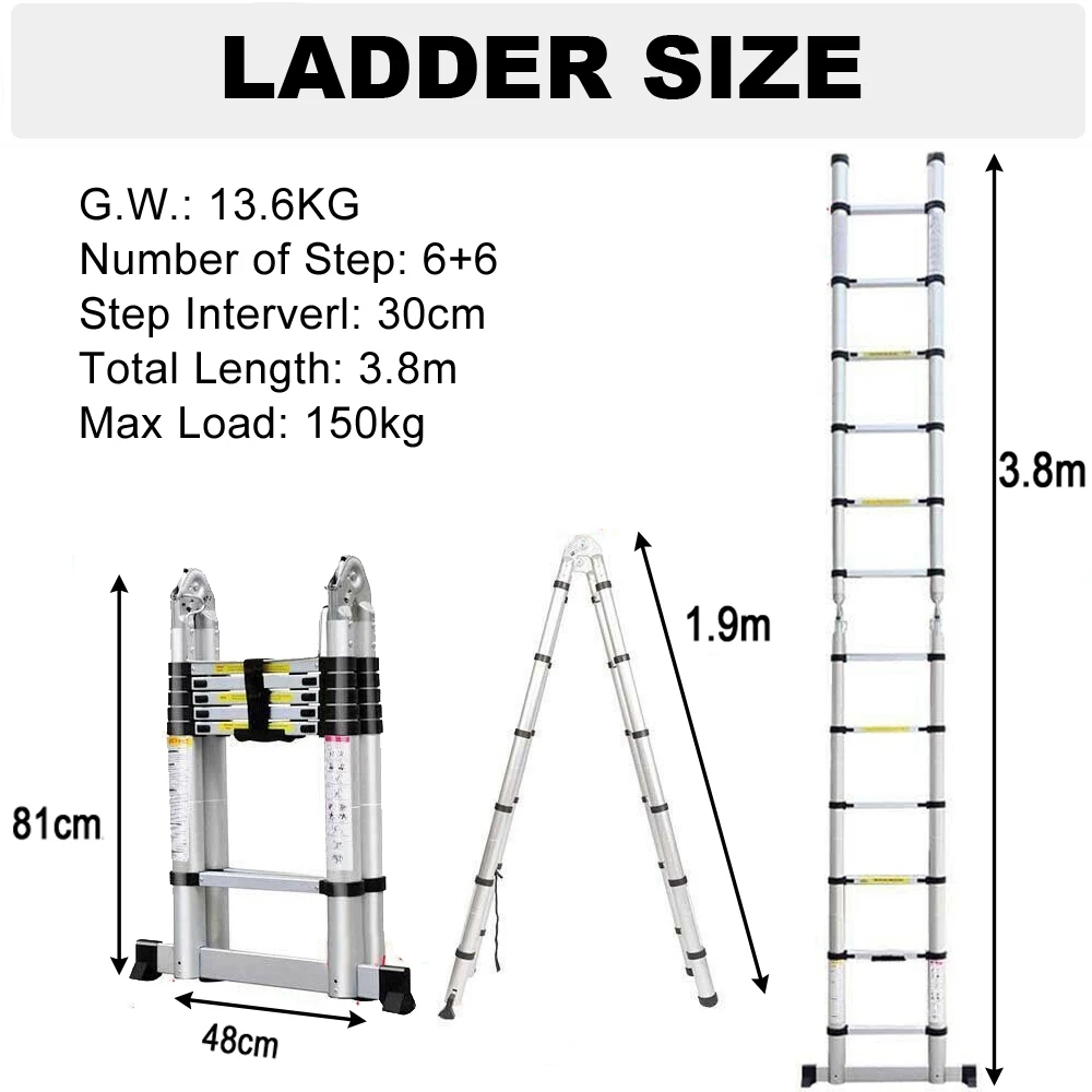 3.8m (1.9m + 1.9m)/(6.2ft + 6.2ft) Folding Telescopic Ladder