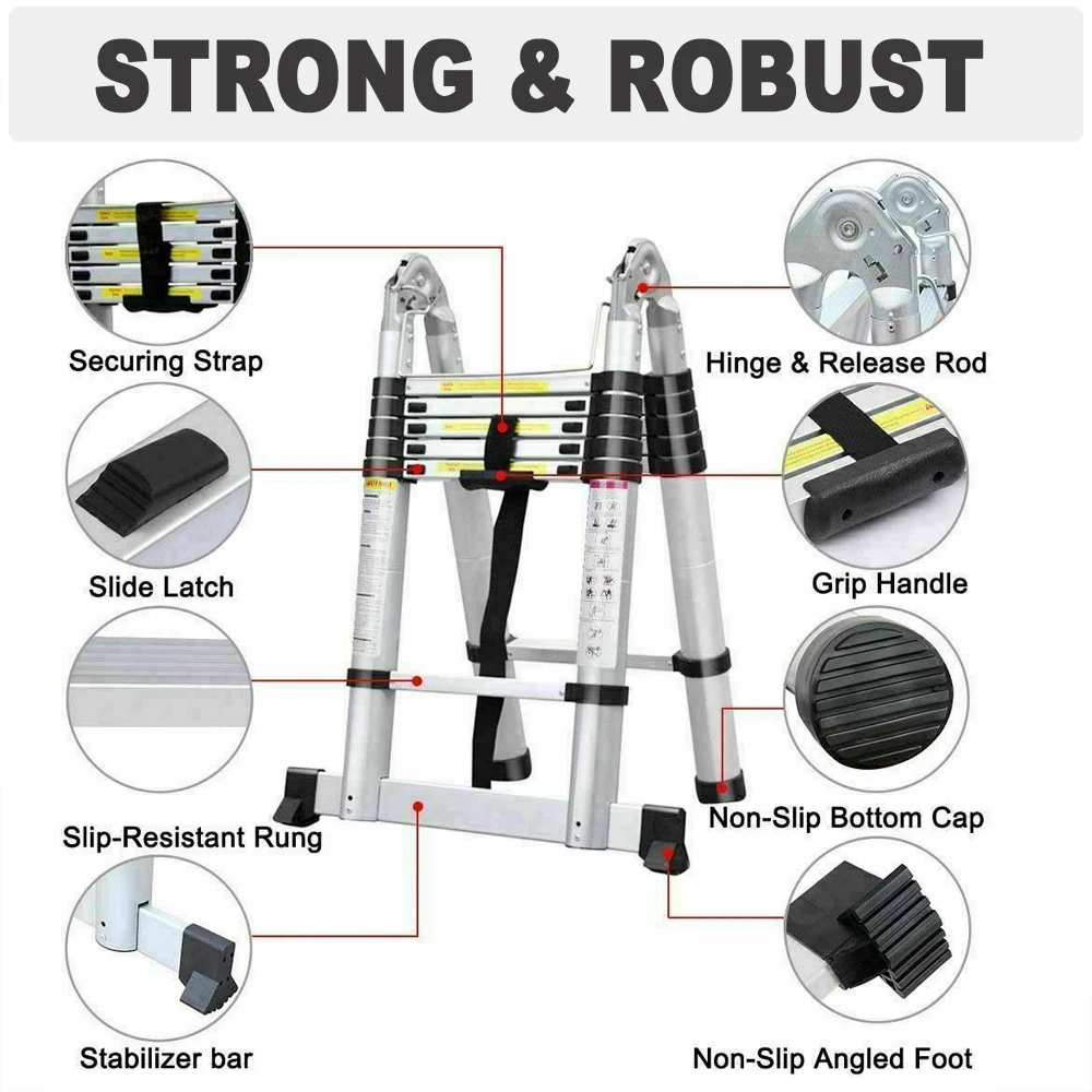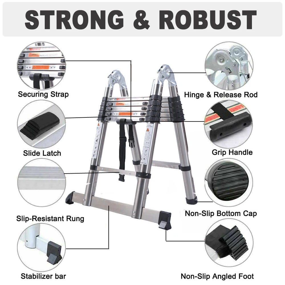 2. Strong & Robust: Telescopic ladder is made of corrosion-resistant aluminum alloy, which holds up to 150 kg