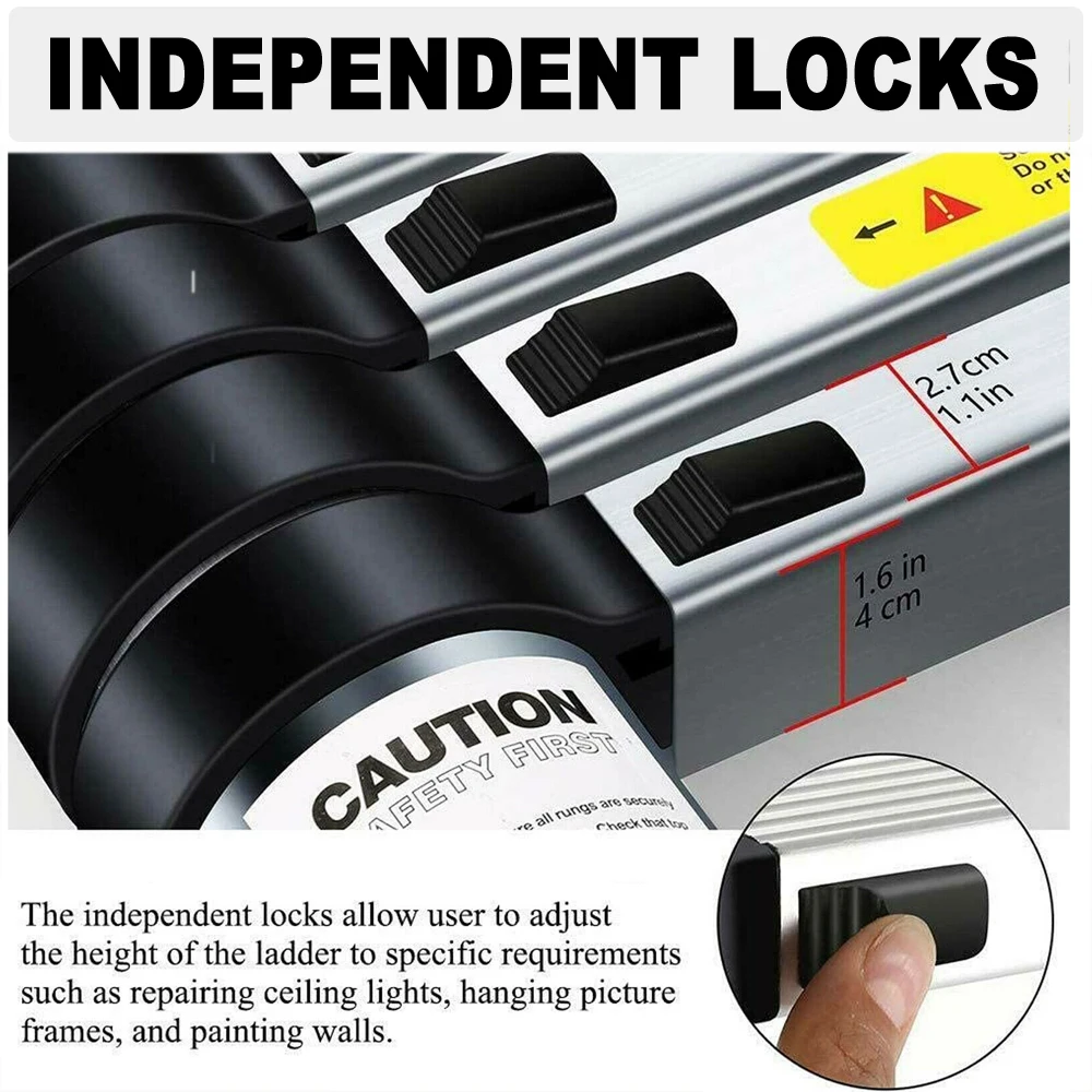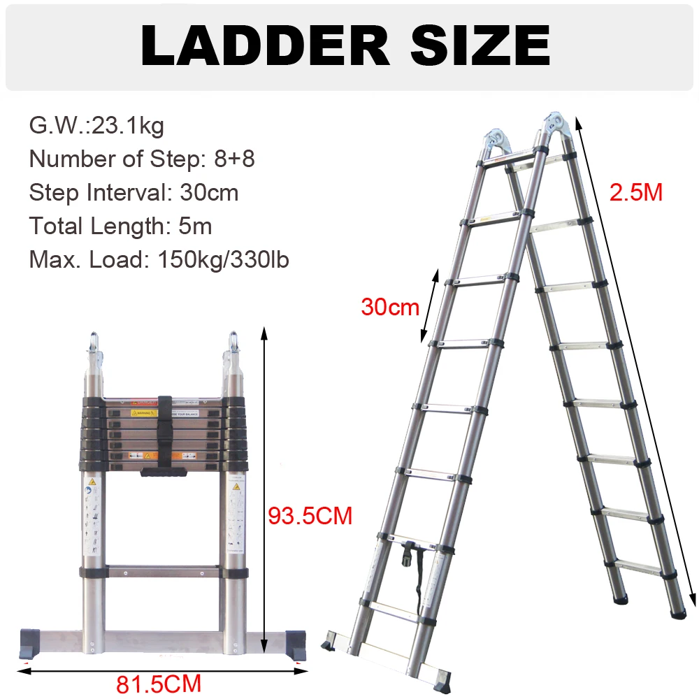 2. Strong & Robust: Telescopic ladder is made of corrosion-resistant stainless steel, which holds up to 330 lb / 150 kg